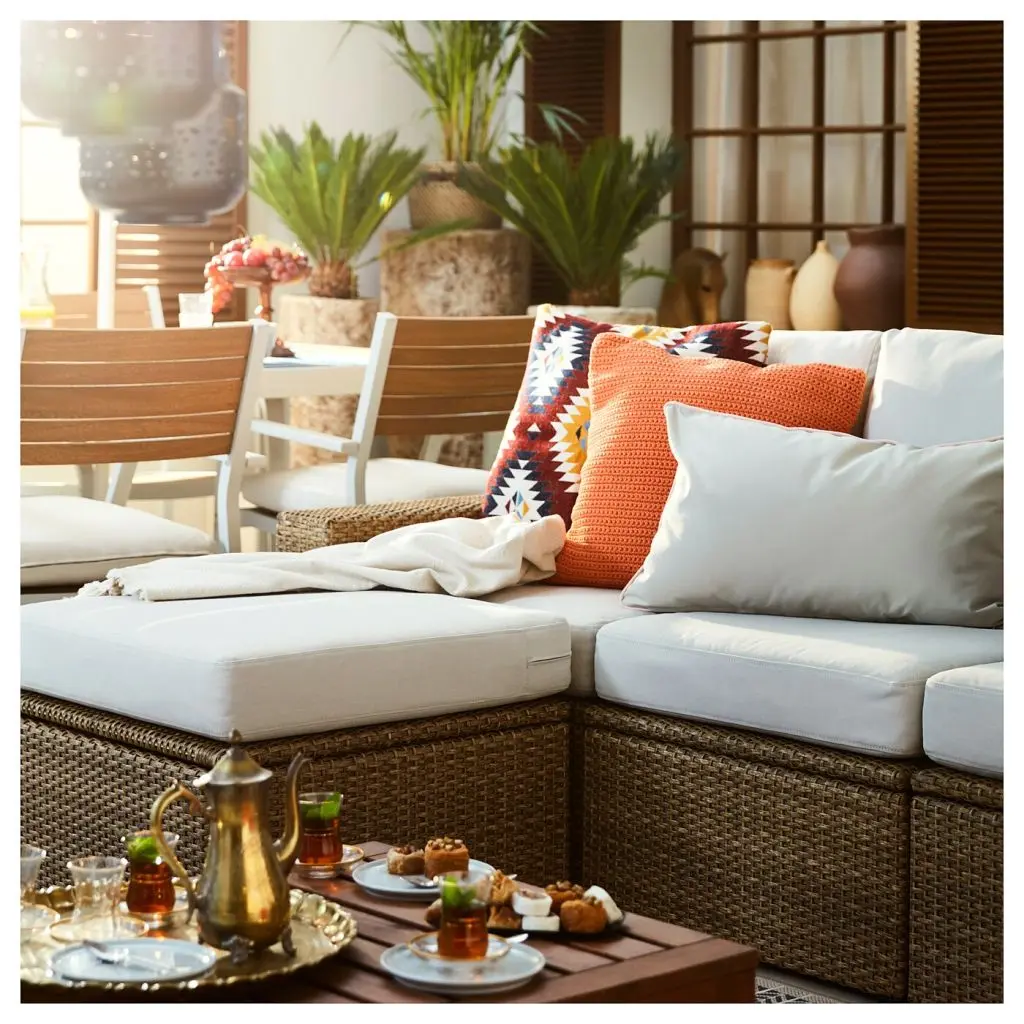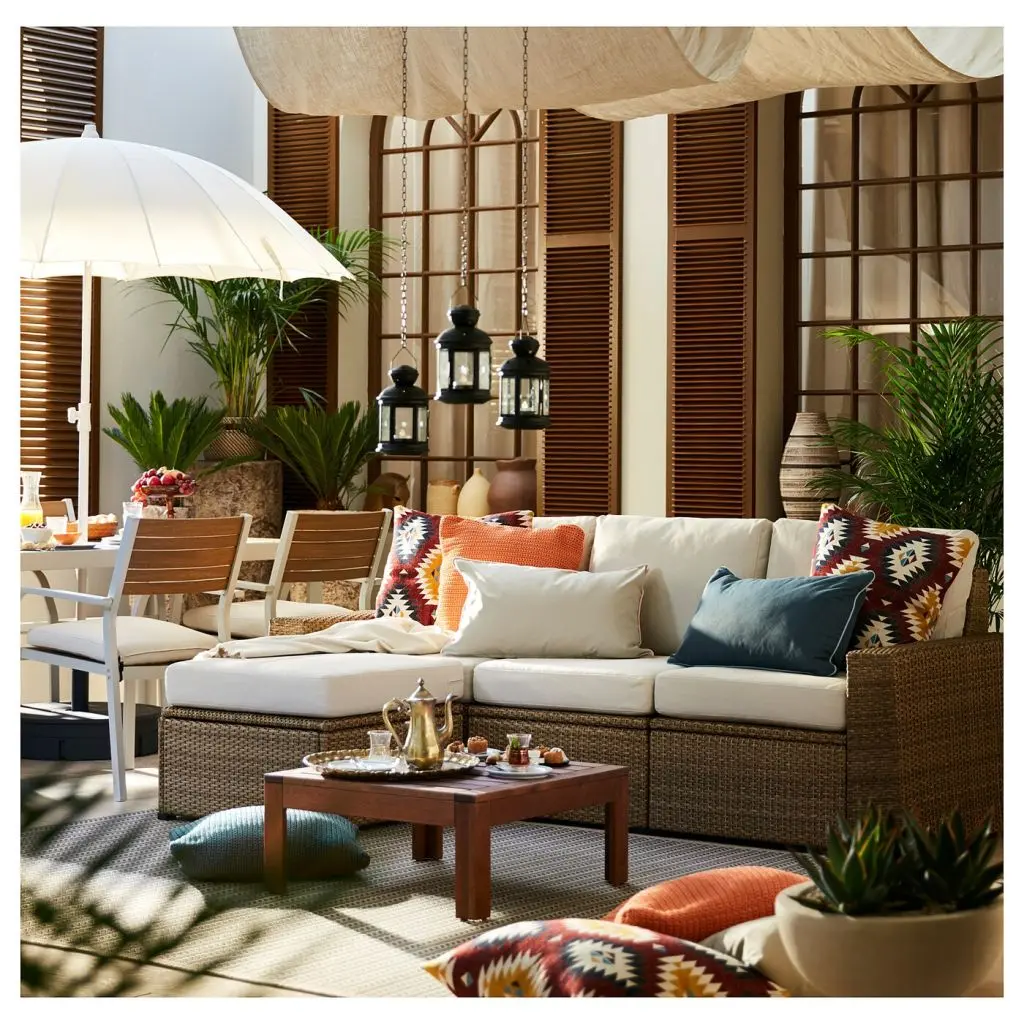 3-местный модульный диван, садовый, с табуретом для ног коричневый коричневый, ФРЁСЁН/ДУВХОЛЬМЕН бежевый, 223x144x88 см