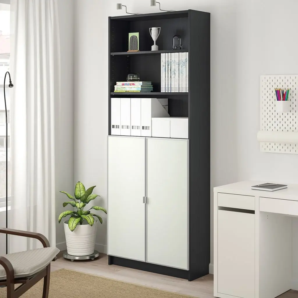 Создайте собственный дизайн дверцы, вставив фотографию или ткань между стеклом и панелью.Съемные полки; устанавливайте на разном уровне в соответствии с необходимостью.Конструкция петель позволяет отрегулировать и выровнять дверцу по вертикали и по горизонтали. Отделка из шпона. Эту мебель необходимо крепить к стене с помощью прилагаемого стенного крепежа.Будьте осторожны при обращении со стеклом! Из-за поврежденных краев и царапин на поверхности стекло может внезапно треснуть и/или разбиться. Избегайте ударов сбоку, там стекло наиболее уязвимо.Для разных стен требуются различные крепежные приспособления. Подберите подходящие для ваших стен шурупы, дюбели, саморезы и т. п. (не прилагаются).Требуемая мин. высота потолка: 205 см.1 несъемная и 4 съемные полки прилагаются.Белая/черная панель для закрепления за стеклом прилагается.Для расширения площади хранения дополните верхней полкой БИЛЛИ такой же ширины.Можно установить на угловой модуль, только если полка, находящаяся рядом с ним, без дверец.Дверь не подходит для стеллажей, которые были приобретены весной 2014 года или раньше.Дизайнер