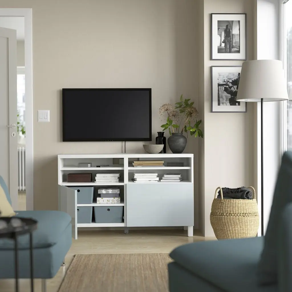 Благодаря нескольким отверстиям на задней панели тумбы под ТВ провода от телевизора и других устройств всегда будут под рукой, но не на виду.Специальное отверстие в верхней панели обеспечит удобное и компактное размещение проводов.Вы можете использовать нажимной механизм или устройство для плавного закрывания. В первом варианте для открывания дверцы достаточно слегка нажать на нее. А во втором – гарантировано плавное и бесшумное закрывание.Съемные полки позволяют регулировать пространство.Организуйте и оптимизируйте систему для хранения БЕСТО, используя подходящие коробки и вставки.Тумбу под ТВ необходимо крепить к стене с помощью прилагающегося стенного крепежа.Если вы выберете функцию плавного закрывания, рекомендуем дополнить фасады ручками, чтобы открывать ящики/шкафы было удобнее.Ручки продаются отдельно.Чтобы создать единый интерьер во всем доме, фасады СЕЛЬСВИКЕН можно комбинировать с подходящими дверями ФАРДАЛЬ для гардероба ПАКС.