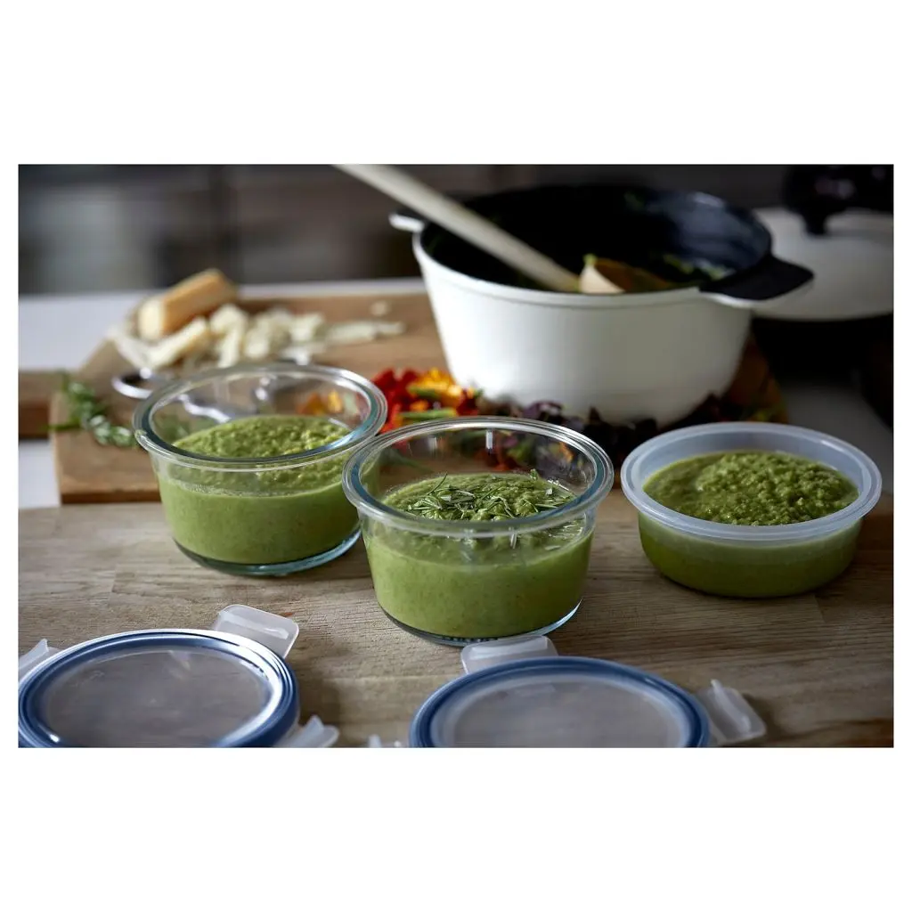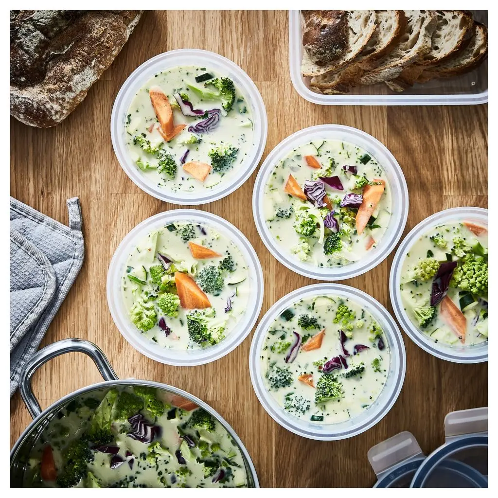 В этом контейнере удобно хранить небольшие порции еды.Несколько пустых емкостей можно складывать одну в другую для экономии места при хранении.Контейнер из прочного пластика сохранит форму, даже если вы положили его в сумку или рюкзак, где совсем нет свободного места.Можно использовать с крышками ИКЕА 365+ круглой формы.Вымойте изделие перед первым использованием.Дизайнер