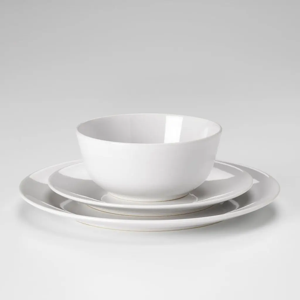 В набор входит: тарелка (26 см), десертная тарелка (20 см) и миска (диам. 14 см, высота 6 см), по 6 шт.Вымойте изделие перед первым использованием.Части набора также продаются отдельно.Дизайнер