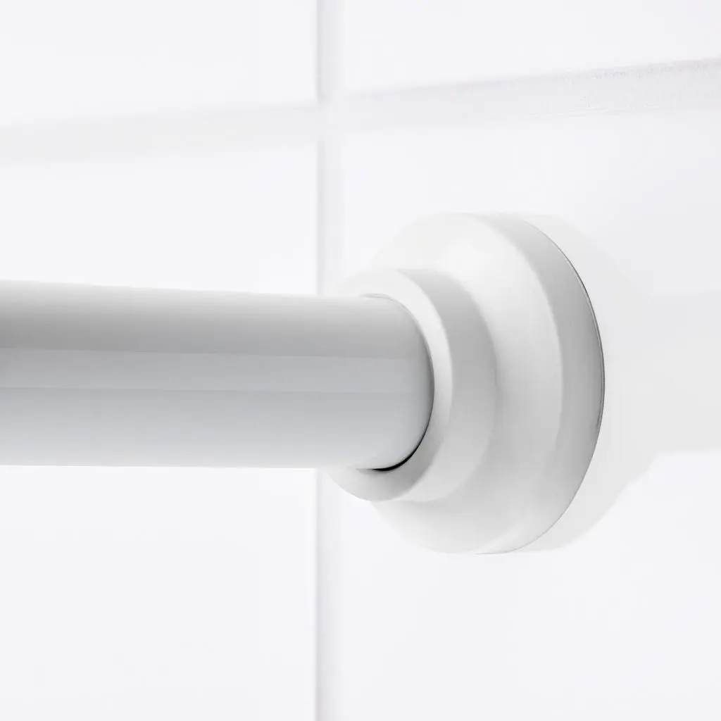 Легко установить – не требуется сверлить отверстия и крепить с помощью шурупов. Пружинный механизм прочно фиксирует штангу.Длина карниза регулируется от 120 до 200 см.Можно дополнить кольцами для шторы в ванной РИНГШЁН.Дизайнер