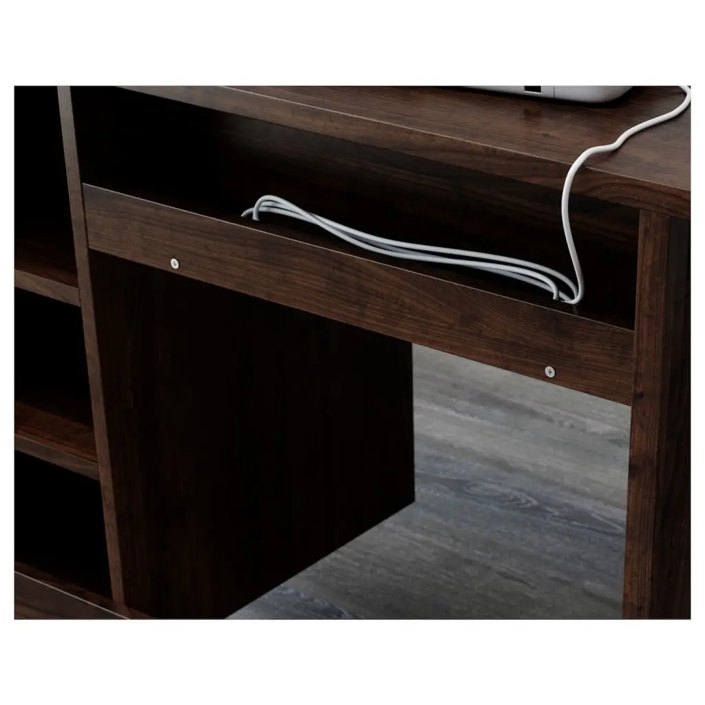 Вы можете собрать все провода и удлинители на полке под столешницей, чтобы они были под рукой, но не на виду.Съемные полки позволяют обеспечить место для компьютера.Дизайнер