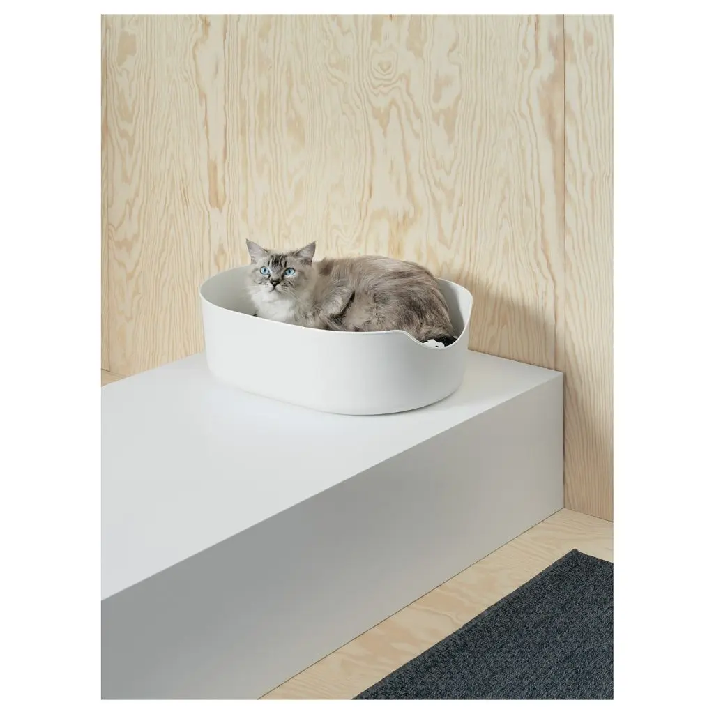 Благодаря высоким бортикам наполнитель не высыпается на пол.Благодаря овальной форме лотка его удобно чистить совком.Этот лоток также можно использовать как лежанку для кошки, просто положите в него что-то мягкое, например подушку ЛУРВИГ.Для кошек.Дизайнер