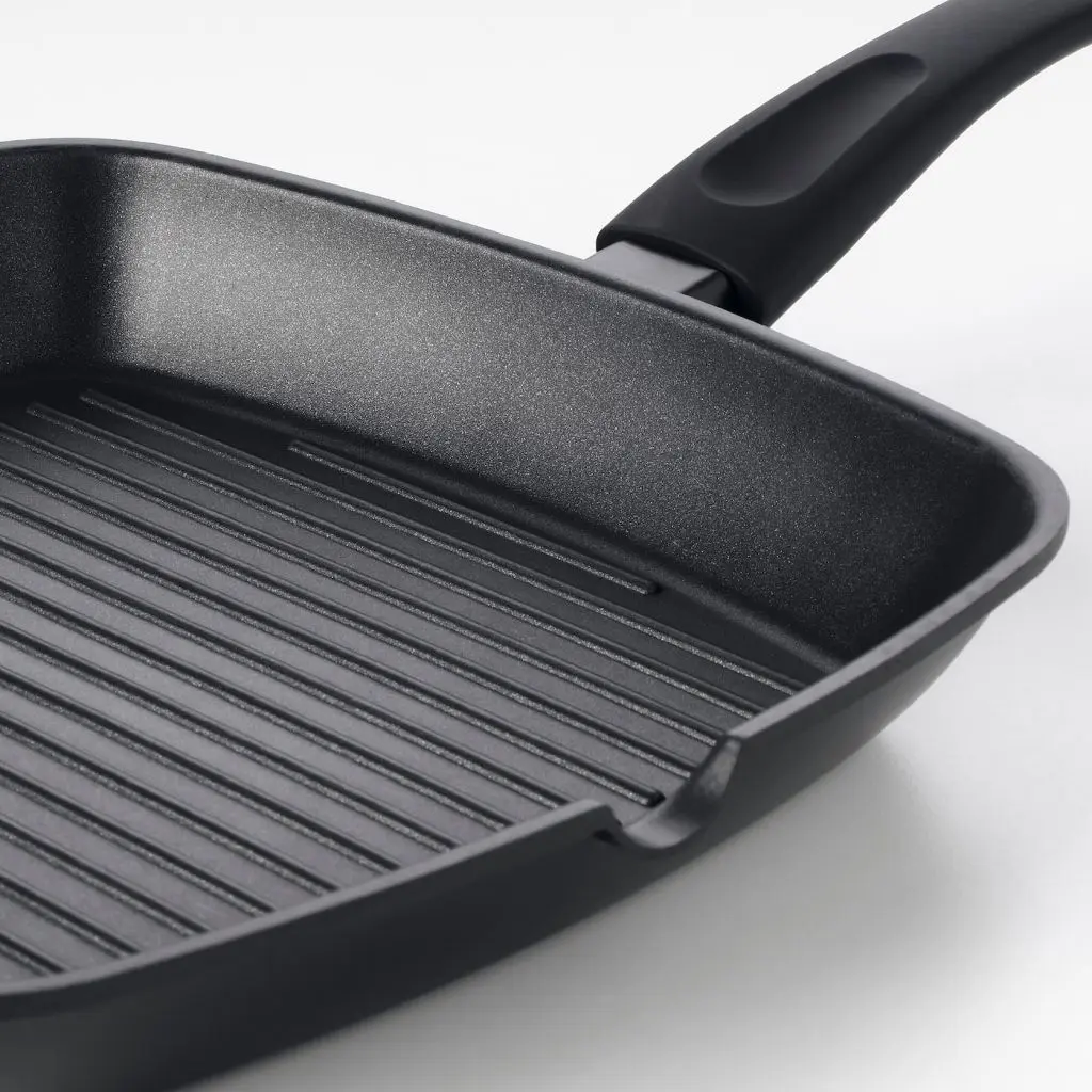 Благодаря ребристой поверхности дна на готовом блюде появляются аппетитные полоски.Благодаря носикам по бокам удобно сливать жир.Благодаря прочному антипригарному покрытию Teflon® Select можно готовить практически без жира, а также посуду легко мыть.Сделано из алюминия. Этот материал равномерно распределяет тепло и быстро реагирует на изменение температуры, поэтому пища не пригорает и не прилипает к поверхности.Толстые стенки и дно равномерно распределяют тепло.Благодаря небольшому весу посуду легко поднять даже с пищей.Легко поднимать благодаря удобной ручке.Дизайнер