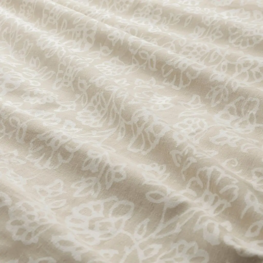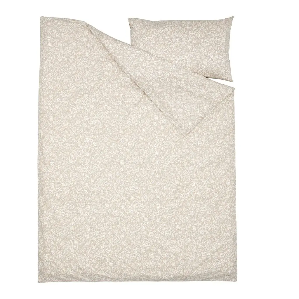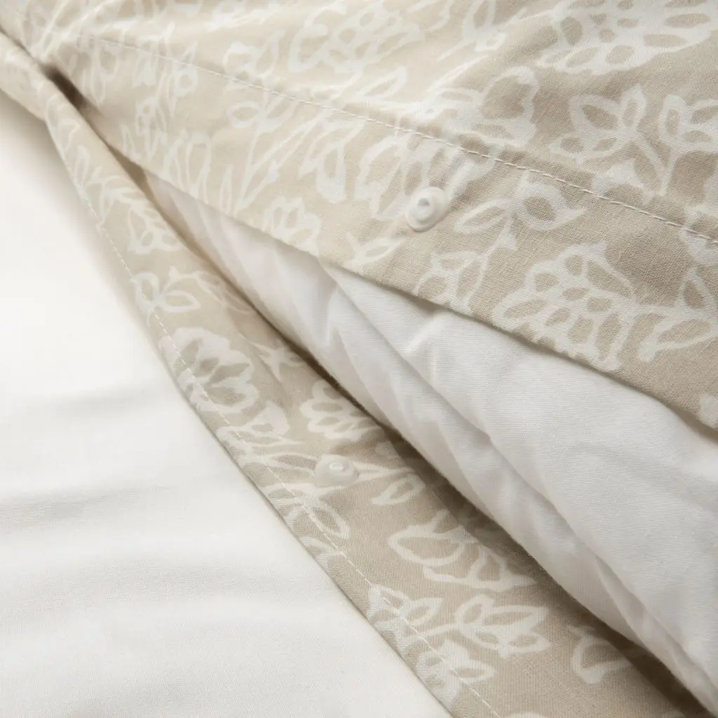 Нежный белый цветочный орнамент на бежевом фоне этого постельного белья сделает спальню гармоничнее. Ткань из хлопка и вискозы прекрасно пропускает воздух и способствует поддержанию в постели комфортного микроклимата.