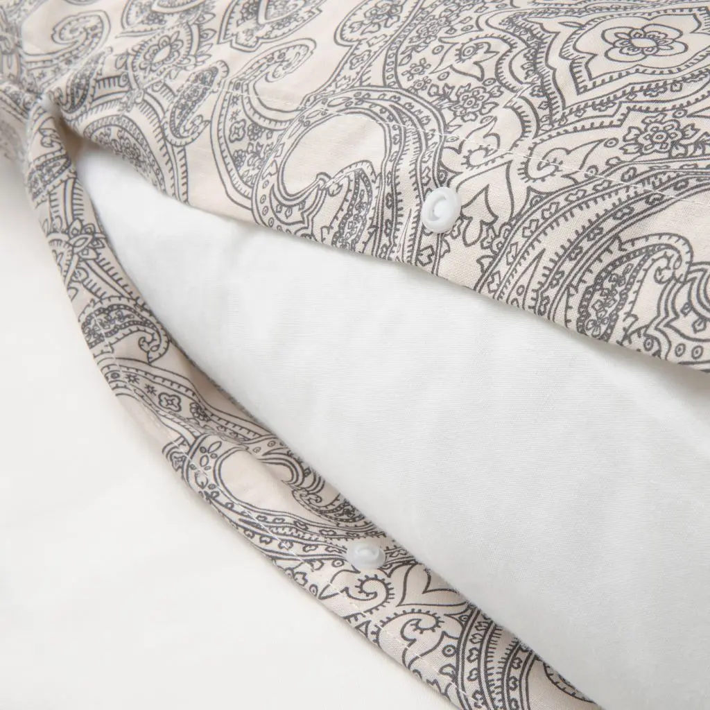 Древний орнамент «пейсли» или «индийский огурец» никогда не выходит из моды. Мы использовали его в дизайне постельного белья для создания в спальне гармоничной располагающей атмосферы.