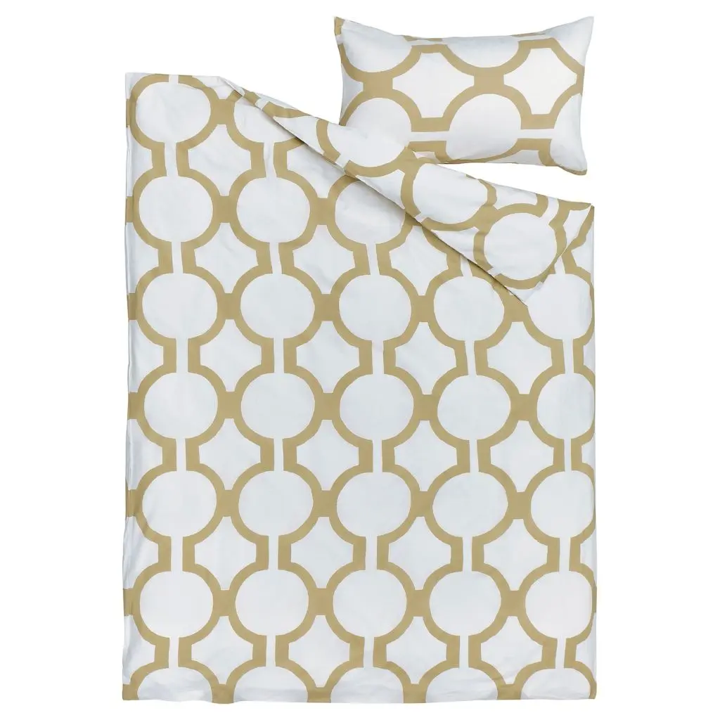 Комплект постельного белья с графичным орнаментом и нейтральной расцветкой создаст ощущение свежести и уюта в спальне. Изготовлено из мягкой «дышащей» хлопковой ткани.