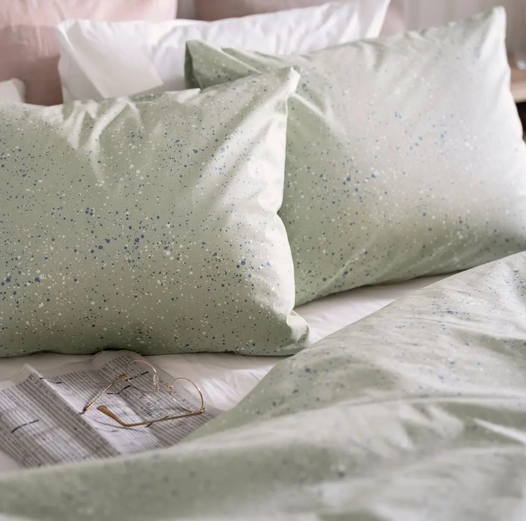 Этот забавный комплект пододеяльников с узором в горошек выглядит так, будто его забрызгали краской. Получилось стильно. Мягкая ткань из хлопка/вискозы поддерживает равномерную температуру в течение всей ночи.
