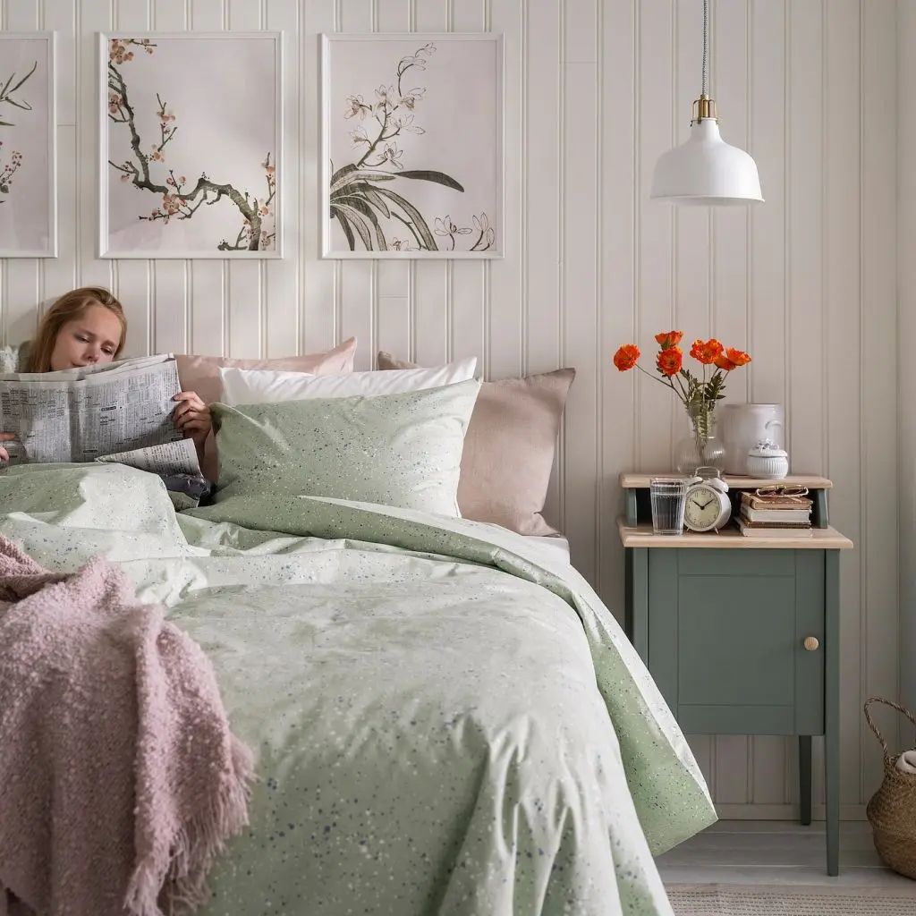 Пододеяльник и 2 наволочки, зеленый/точечный, 200x200/50x70 см