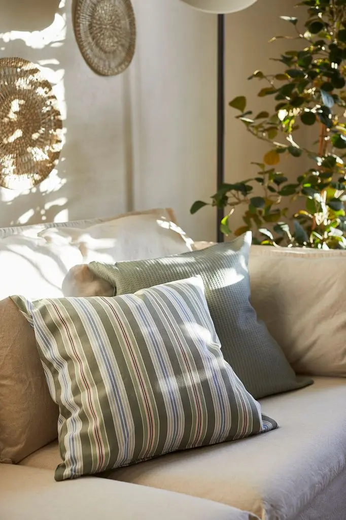 Этот чехол на подушку привносит в интерьер уютное очарование деревенского стиля. Узор в полоску и цветовая гамма напоминают дизайн традиционного скандинавского текстиля. Хорошо сочетается с узорами в клетку и полоску или с однотонными поверхностями.