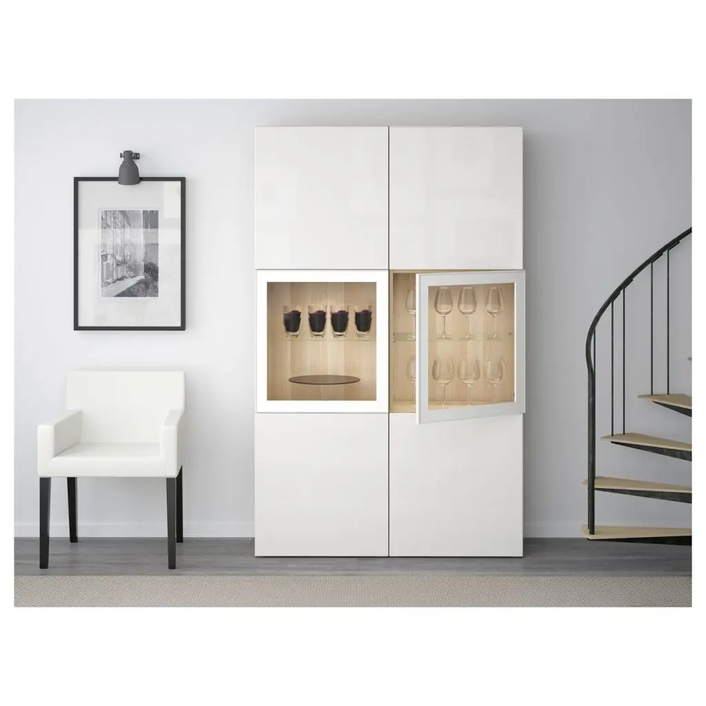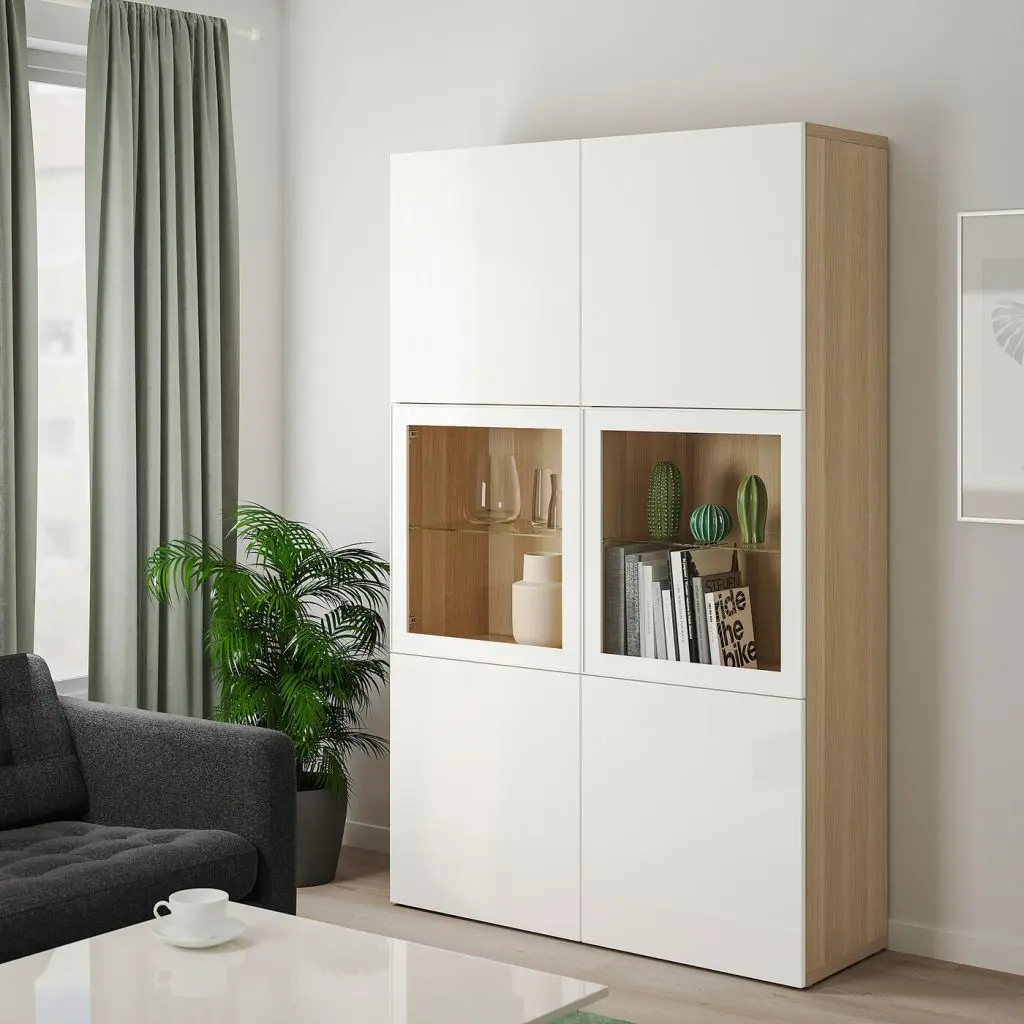 Вы можете использовать нажимной механизм или устройство для плавного закрывания. В первом варианте для открывания дверцы достаточно слегка нажать на нее. А во втором – гарантировано плавное и бесшумное закрывание.Дверцы защищают содержимое и выполняют декоративную функцию. Выберите дверцы, подходящие к интерьеру Вашего дома.Стеклянные дверцы обеспечивают обзор содержимого, защищая его от пыли.Съемные полки позволяют регулировать пространство.Эту мебель необходимо крепить к стене с помощью прилагаемого стенного крепежа.Будьте осторожны при обращении с закаленным стеклом! Из-за поврежденных краев и царапин на поверхности стекло может внезапно разбиться.Для разных стен требуются различные крепежные приспособления. Подберите подходящие для ваших стен шурупы, дюбели, саморезы и т. п. (не прилагаются).Внутренние элементы для организации хранения в модулях БЕСТО продаются отдельно.Если вы выберете функцию плавного закрывания, рекомендуем дополнить фасады ручками, чтобы открывать ящики/шкафы было удобнее.Дизайнер