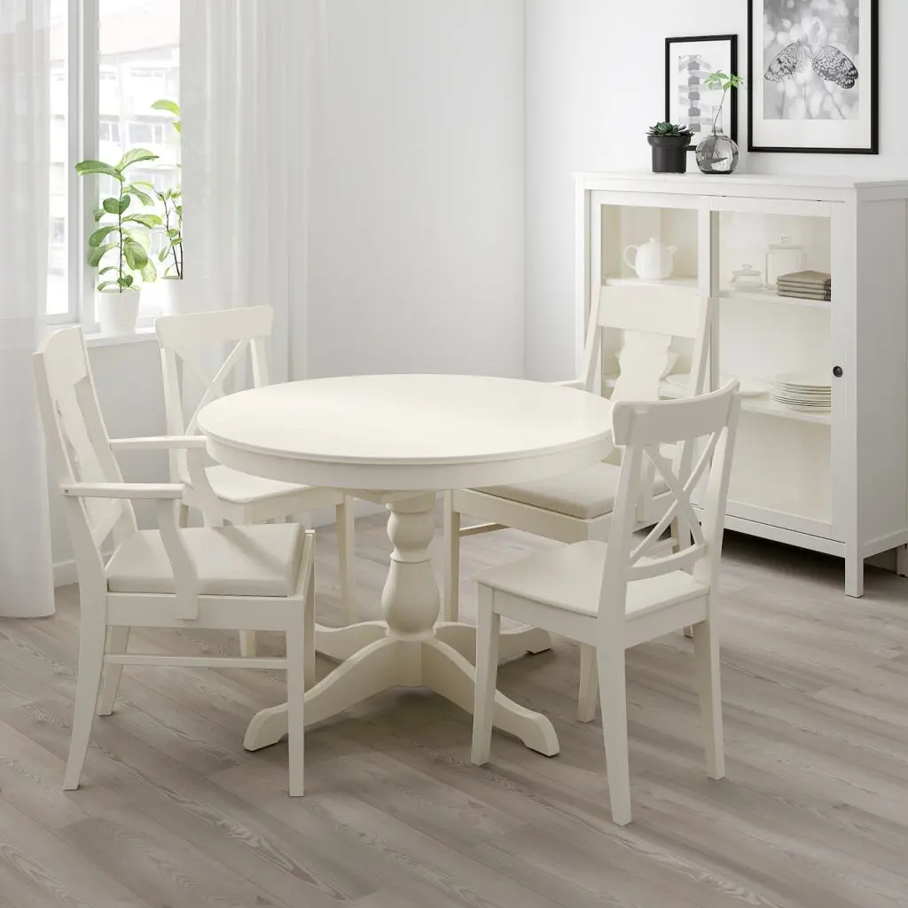 Массив дерева – износостойкий натуральный материал.Поверхность, покрытая прозрачным лаком, проста в уходе.Размер стола легко изменить. Благодаря вкладной доске, хранящейся под столешницей, за столом могут сидеть от 4 до 6 человек.Стол легко может раздвинуть один человек.Функция защелкивания; дополнительная столешница плотно задвигается.Вкладную доску удобно хранить под столешницей.Мы все проверили! Поверхность столешницы выдержит воздействие жидкостей и тепла, а также будет устойчива к пятнам, жиру, царапинам и ударам, чтобы долгие годы выдерживать все испытания повседневного использования.Резная деталь спинки перекликается с формой ножек стола и подчеркивает традиционный дизайн кресла.На 4-6 человек.Для обеспечения максимального качества при необходимости подтягивайте шурупы.Дизайнер