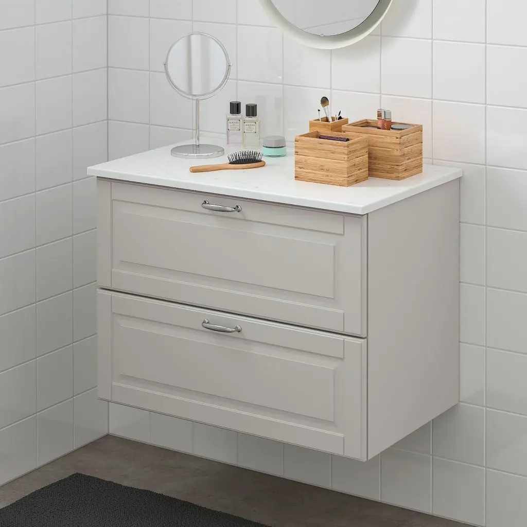 Отличное соотношение цены и качества и гарантия на срок не менее 10 лет ежедневного использования. Ознакомьтесь с условиями в гарантийной брошюре.Матовая поверхность шкафа под раковину создает располагающую атмосферу.Ножки ГОДМОРГОН продаются отдельно.Ручки прилагаются.Ламинат чувствителен к воздействию едких химикатов, например средств для удаления накипи, хлора и ацетона. При попадании таких средств на ламинат их необходимо сразу удалить. Для ухода можно использовать обычные моющие средства.Убедитесь, что материалы, из которых сделаны стены ванной комнаты, выдержат вес мебели. Если у вас возникли сомнения по поводу установки, обратитесь к специалисту. Для разных стен требуются различные шурупы, дюбели, саморезы и т. п. (не прилагаются).Эту мебель необходимо крепить к стене с помощью прилагаемого стенного крепежа.Если вы сомневаетесь в прочности стен в ванной, мы рекомендуем использовать ножки.Если вы сомневаетесь в прочности стен в ванной, мы рекомендуем использовать ножки.Дизайнер