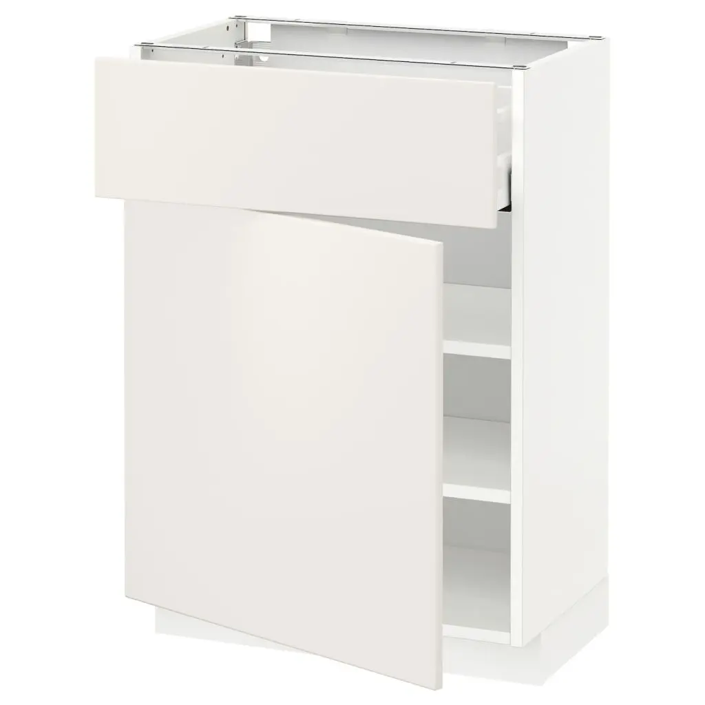 Угловой напольный шкаф с полкой, белый/Будбин белый с оттенкомНожка, 128x68 см8 см