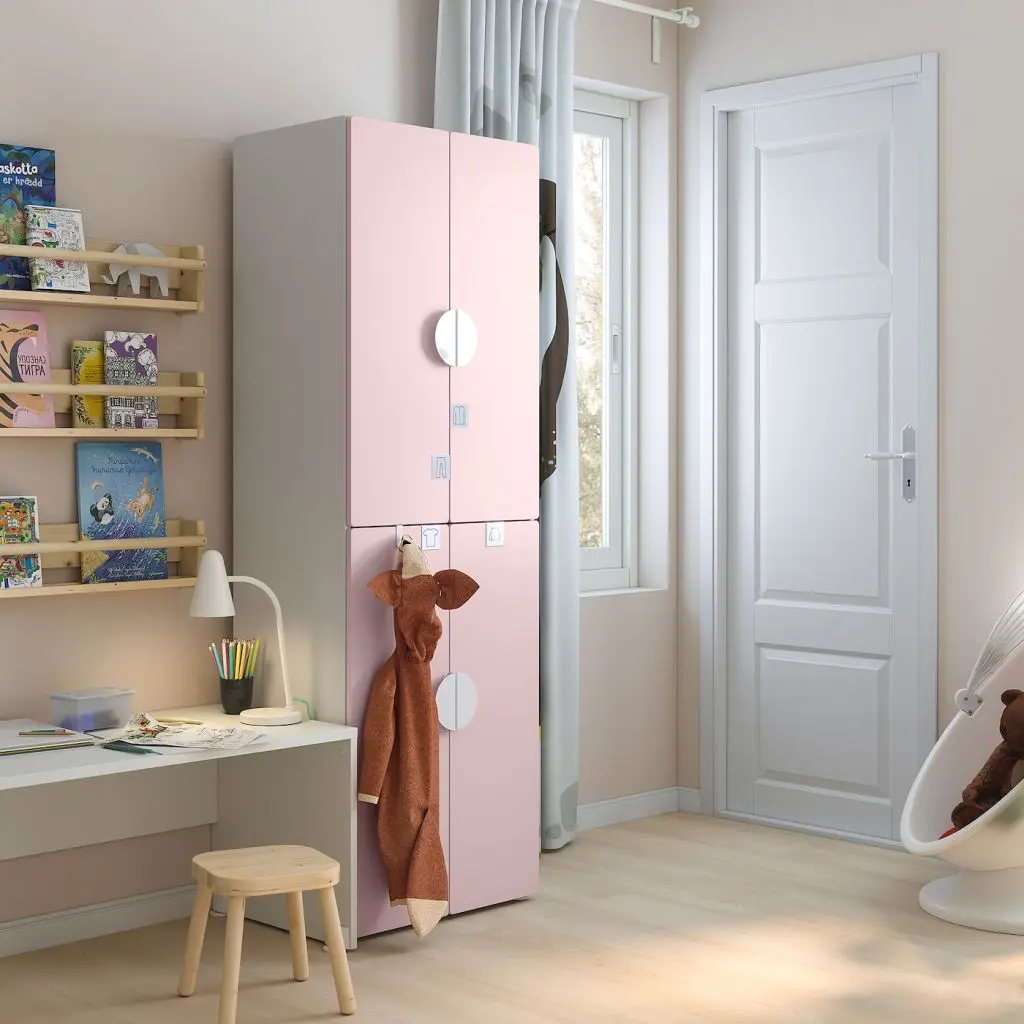 Ребенок может пользоваться этим гардеробом много лет, т. к. глубина шкафа позволяет развешивать в нем одежду на плечиках стандартного размера, а высоту его внутренних элементов можно менять по мере роста ребенка.Регулируемые ножки прилагаются, обеспечивают устойчивость даже на неровном полу.ВНИМАНИЕ! ОПАСНОСТЬ ОПРОКИДЫВАНИЯ! Незакрепленная мебель может опрокинуться. Эту мебель необходимо крепить к стене с помощью прилагаемого крепежа для предотвращения опрокидывания.2 платяные штанги, 2 крючка для платяной штанги ХЭЛПА и 2 крючка/зажима ЛЭТТХЕТ прилагаются.Для разных стен требуются различные крепежные приспособления. Подберите подходящие для ваших стен шурупы, дюбели, саморезы и т. п. (не прилагаются).Ручки продаются отдельно.