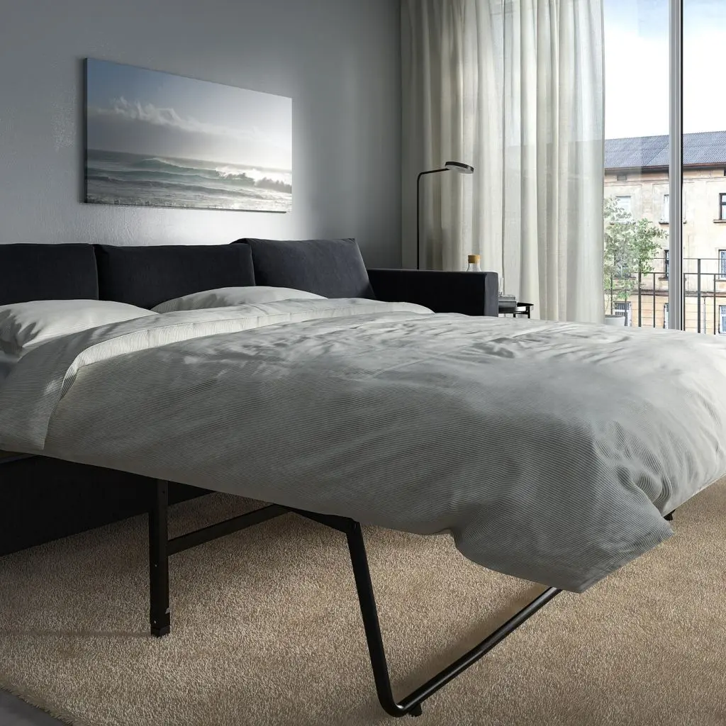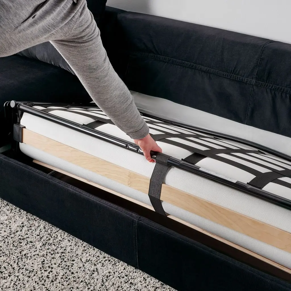 Секции ВИМЛЕ можно по-разному комбинировать, чтобы создать диван, максимально соответствующий вашим потребностям и возможностям помещения. В этой комбинации есть диван-кровать с комфортным высоким матрасом.