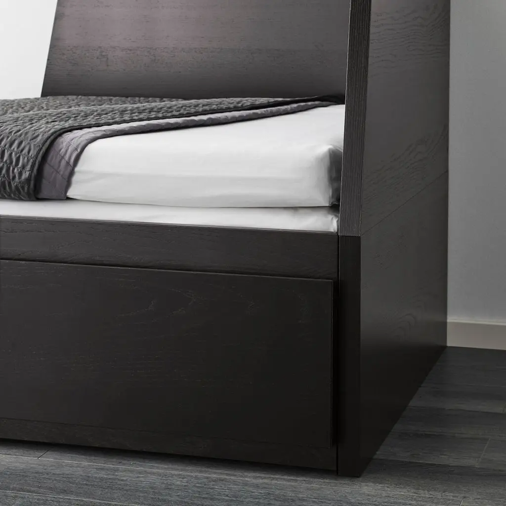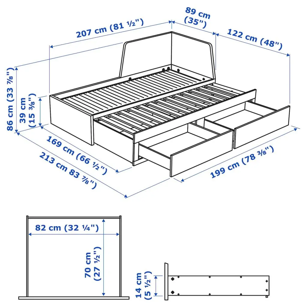 Спинку можно установить справа или слева.Благодаря отделке из шпона кровать со временем будет выглядеть только лучше.Добавьте мягкие и объемные подушки в качестве опоры для спины, чтобы сидеть на кушетке было комфортнее.Кушетка и кровать в одном предмете мебели. Это компактное решение идеально для комнаты подростка или любого помещения, в котором не так много места.Эта кушетка легко превращается в двуспальную кровать, для этого нужно просто выдвинуть основание и положить матрас.В больших ящиках можно хранить запасные одеяла и подушки, постельное белье и другие вещи, которые удобно держать под рукой, но не на виду.Лаконичный дизайн подойдет для интерьера практически в любом стиле. Можно дополнить подушками, чтобы сделать кушетку уютнее и придать индивидуальный облик.Одеяла и подушки днем можно убирать в большие наволочки и использовать в качестве диванных подушек. Практичное решение для хранения и отличная опора для спины!Этот пенополиуретановый матрас обеспечит оптимальную опору и комфорт.Реечное дно кровати прилагается.2 пенополиуретановых матраса ОСВАНГ прилагаются.Кушетку необходимо дополнить двумя матрасами 80×200 см. При использовании кушетки в качестве односпальной кровати положите матрасы один на другой, для двуспальной кровати положите матрасы рядом.Постельное белье продается отдельно.В эту комбинацию входят изделия с разными гарантийными условиями. Подробную информацию можно найти в гарантийных документах на сайте www.ikea.com.