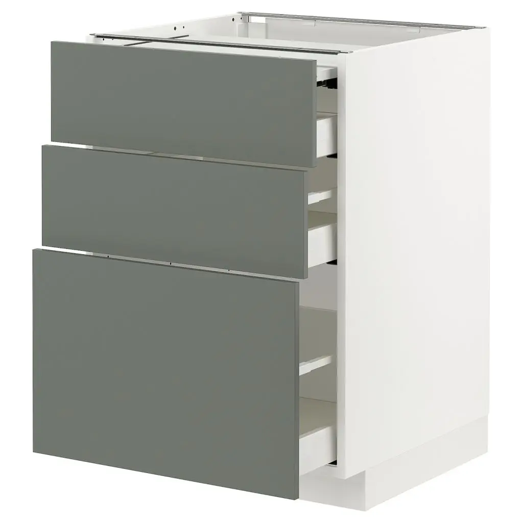 Код кухонного шкафа ME/MA 460Благодаря доводчику ящики закрываются плавно, мягко и бесшумно.Ящики выдвигаются полностью, что обеспечивает удобный обзор и доступ к содержимому.Ящики с плавным ходом и стопором.Самозакрывающиеся ящики.Каркас имеет устойчивую конструкцию благодаря стенкам из ДСП толщиной 18 мм.Для разных стен требуются различные крепежные приспособления. Подберите подходящие для ваших стен шурупы, дюбели, саморезы и т. п. (не прилагаются).Ножки и цоколи продаются отдельно.Можно дополнить ручкой.