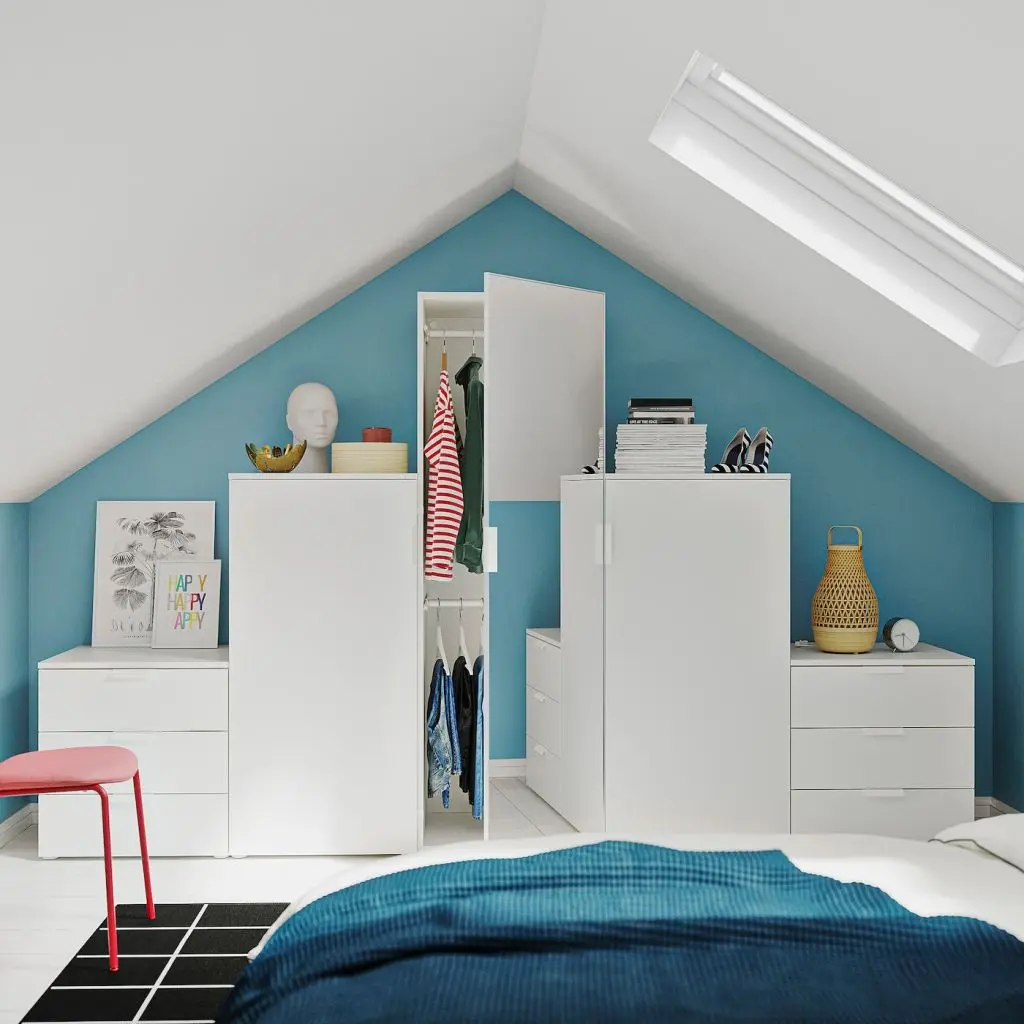 Решения для хранения серии ОПХУС подойдут для самых разных помещений. Они могут быть высокими или низкими, располагаться вдоль всей стены или под наклонным потолком. Дополните дверьми и внутренними элементами, чтобы хранение было еще более удобным.