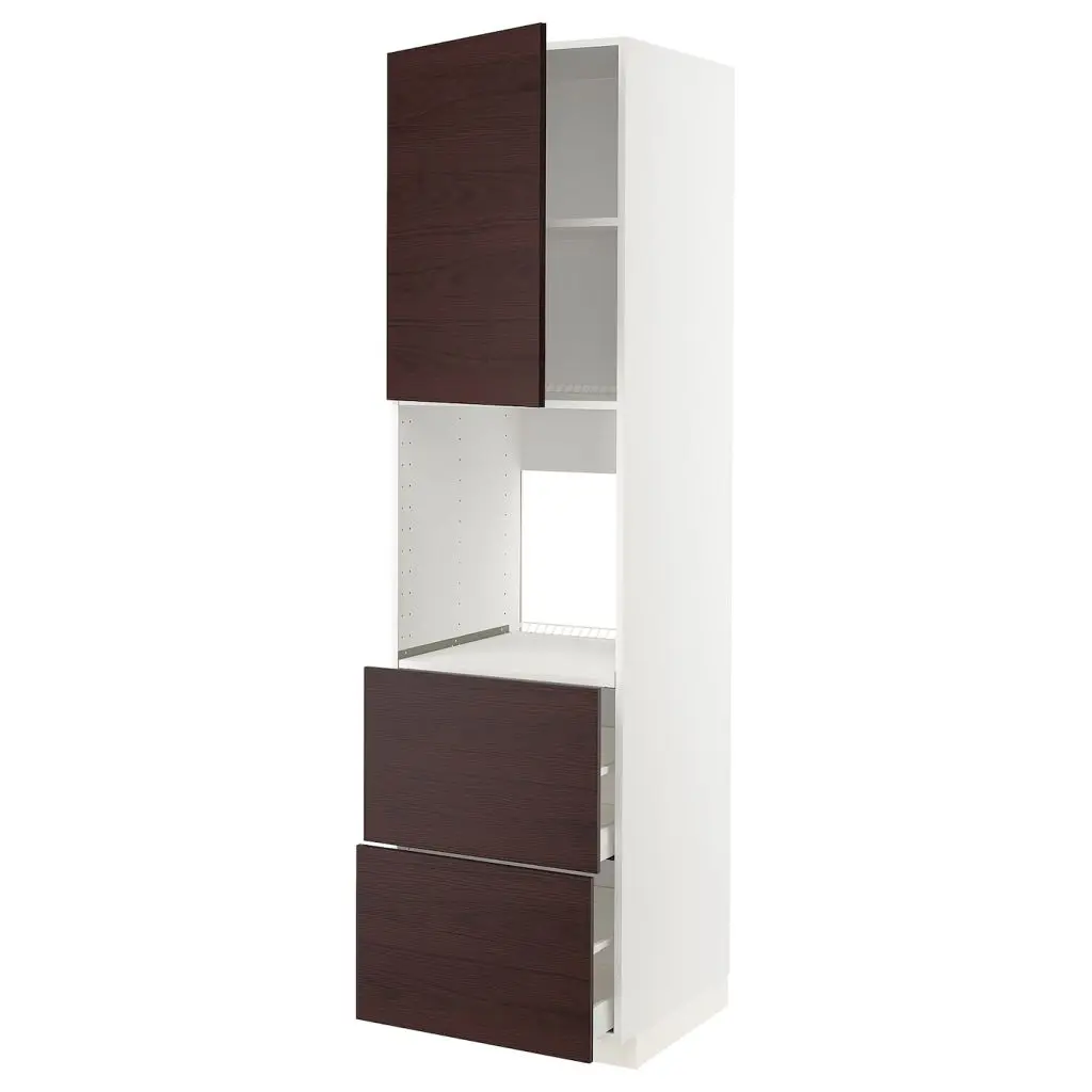 Выс шкаф д/духовки+дв/2фрнт/2выс ящ, белый Аскерсунд/темно-коричневый под ясень, 60x60x220 см