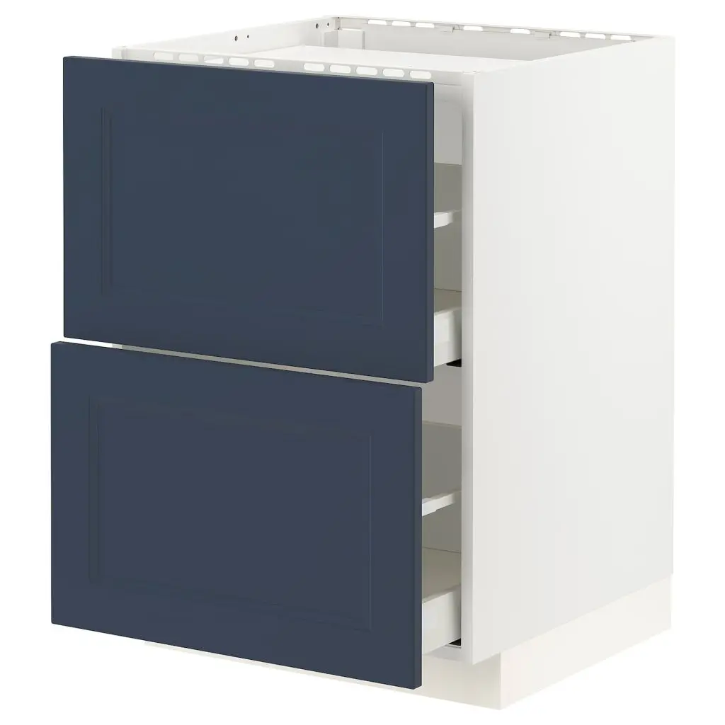 Шкаф д/варочной панели/2фасада/2ящ, белый Акстад/матовая поверхность синий, 60x60 см