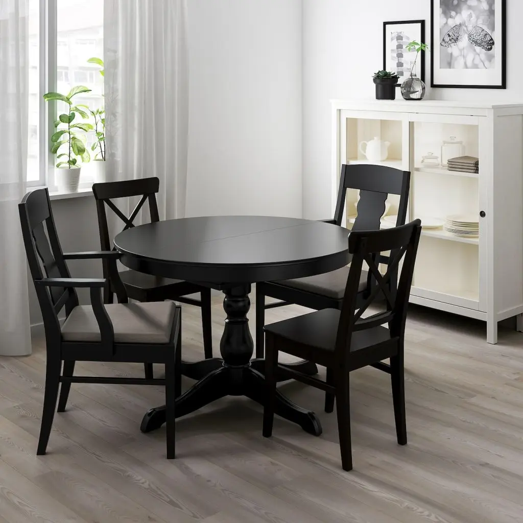 Размер стола легко изменить. Благодаря вкладной доске, хранящейся под столешницей, за столом могут сидеть от 4 до 6 человек.Функция защелкивания; дополнительная столешница плотно задвигается.Стол легко может раздвинуть один человек.Вкладную доску удобно хранить под столешницей.Поверхность, покрытая прозрачным лаком, проста в уходе.Мы все проверили! Поверхность столешницы выдержит воздействие жидкостей и тепла, а также будет устойчива к пятнам, жиру, царапинам и ударам, чтобы долгие годы выдерживать все испытания повседневного использования.На 4-6 человек.Рекомендуется использовать только в помещении.Для обеспечения максимального качества при необходимости подтягивайте шурупы.Дизайнер