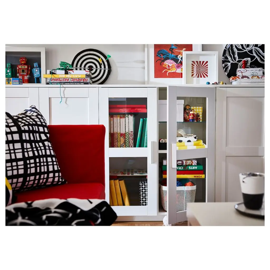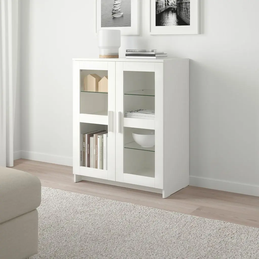 Глухие дверцы защитят содержимое от пыли.Съемные полки позволяют регулировать внутреннее пространство в соответствии с потребностями хранения.Будьте осторожны при обращении со стеклом! Из-за поврежденных краев и царапин на поверхности стекло может внезапно треснуть и/или разбиться. Избегайте ударов сбоку, там стекло наиболее уязвимо.Эту мебель необходимо крепить к стене с помощью прилагаемого стенного крепежа.Для разных стен требуются различные крепежные приспособления. Подберите подходящие для ваших стен шурупы, дюбели, саморезы и т. п. (не прилагаются).Комбинируется с другой мебелью серии БРИМНЭС.Дизайнер