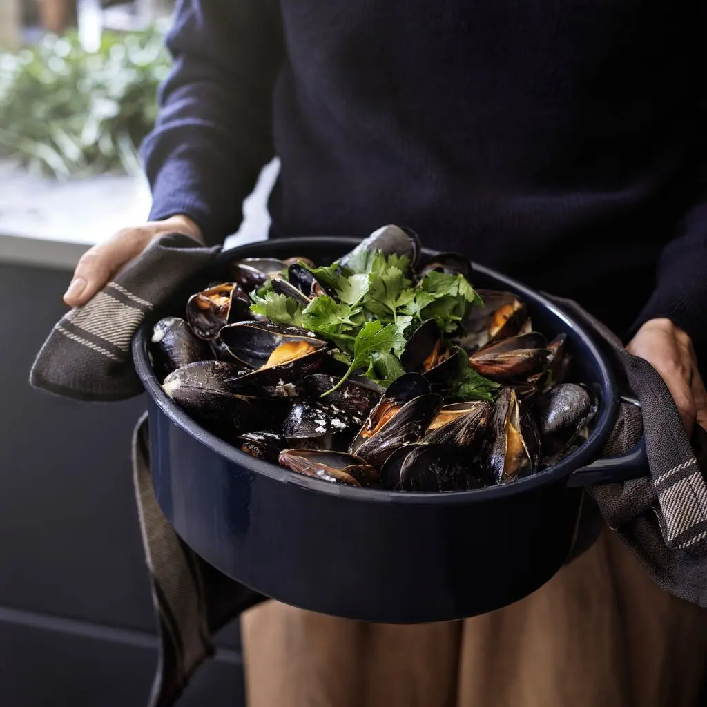 В этой эмалированной кастрюле в традиционном стиле приятно готовить на плите или в духовке, подавать блюдо на стол и удобно хранить «завтрашний» обед в холодильнике.