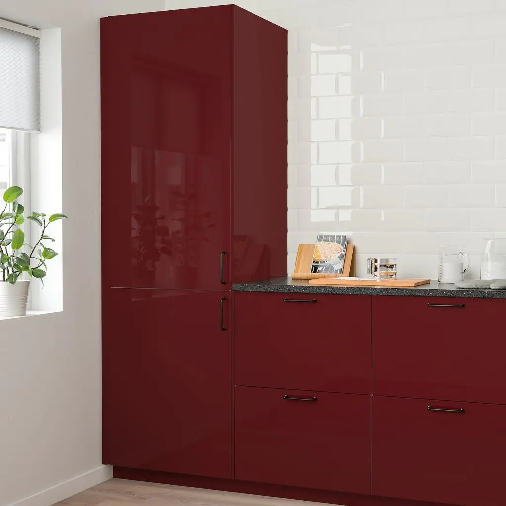 Глянцевые дверцы КАЛЛАРП придадут яркий современный облик вашей кухнеПокрытие из глянцевой пленки; легко поддерживать в чистоте.Бесплатно 25 лет гарантии. Подробнее об условиях гарантии – в гарантийной брошюре.Двери можно навешивать на правую и левую сторону.Дополните петлями со встроенным стопором УТРУСТА 110°, продаются отдельно.Необходимо дополнить 2 петлями.Можно дополнить ручкой.Можно дополнить глянцевыми накладными панелями, цоколями и декоративными карнизами КАЛЛАРП темного красно-коричневого цвета.Дизайнер
