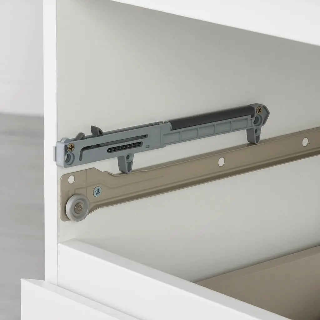 Обеспечивает плавное и бесшумное закрывание ящика.Подходит для всех комодов серии МАЛЬМ, кроме 2 верхних ящиков комода МАЛЬМ с 6 ящиками 40×123 см.Подходит для всех комодов серии БРИМНЭС.