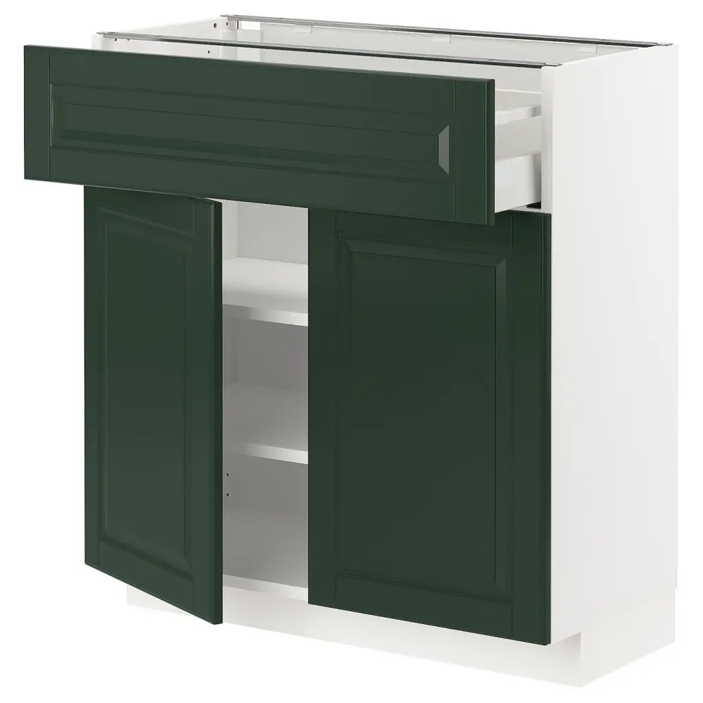 Напольн шкаф 4 фронт панели/4 ящика, белый, Будбин темно-зеленый, 80x60 см