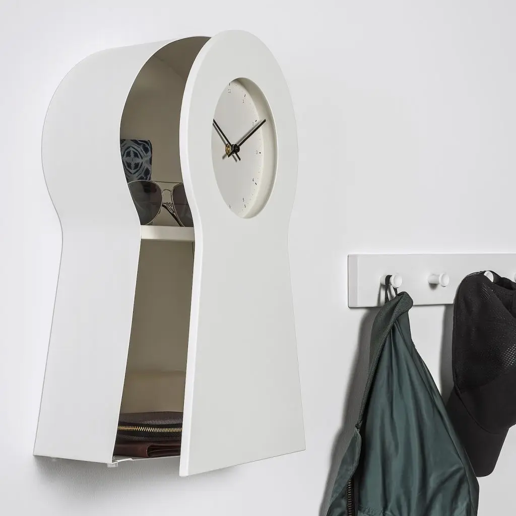 Часы с практичным отделением для хранения различных мелочей.Можно повесить на стену или поставить на полку.Кварцевый механизм обеспечивает точный ход часов.Батарейки продаются отдельно, требуется 1 батарейка LR6 AA 1,5 В.Для разных стен требуются различные крепежные приспособления. Подберите подходящие для ваших стен шурупы, дюбели, саморезы и т. п. (не прилагаются).Мы рекомендуем использовать щелочные батарейки.Стрелки устанавливаются с помощью колесика на задней панели механизма часов. Передвигая стрелки рукой, вы можете повредить механизм часов.Дизайнер