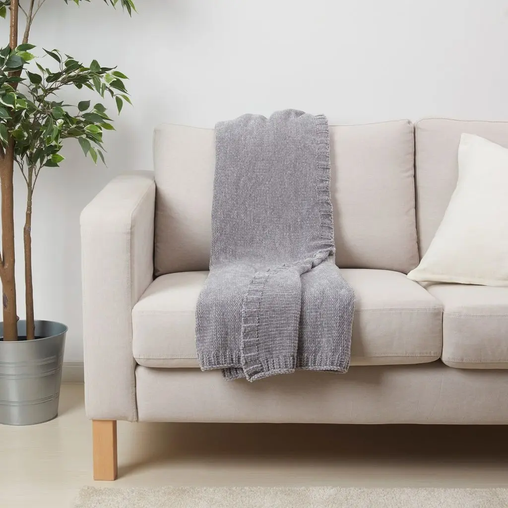 Мягкая, приятная на ощупь шенилловая ткань.