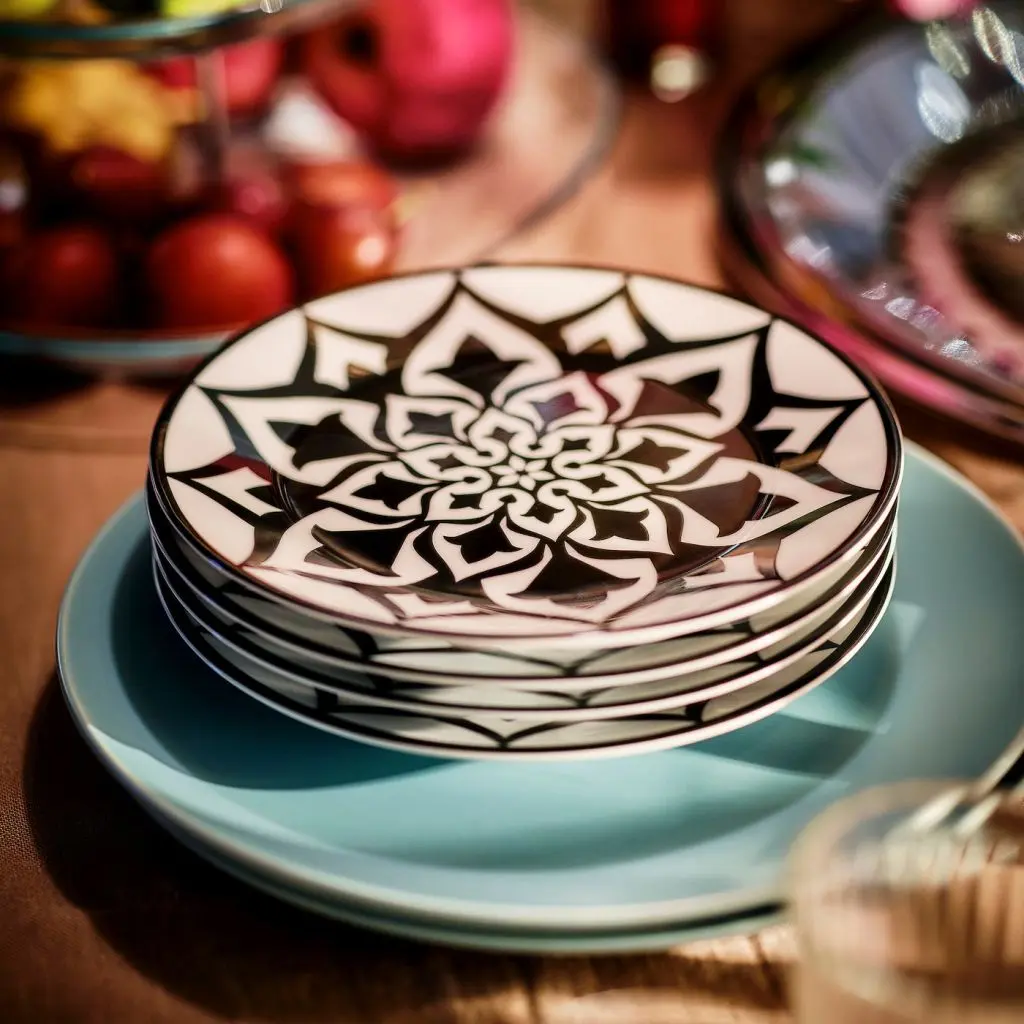 Эти черно-белые тарелки из прочного полевошпатного фарфора сделают особенной каждую трапезу. Украшены традиционным марокканским орнаментом, как и весь фарфор серии ХЕМБЬЮДЕН.