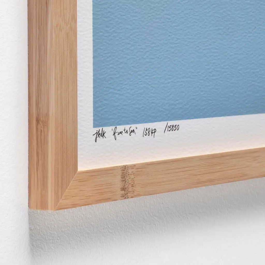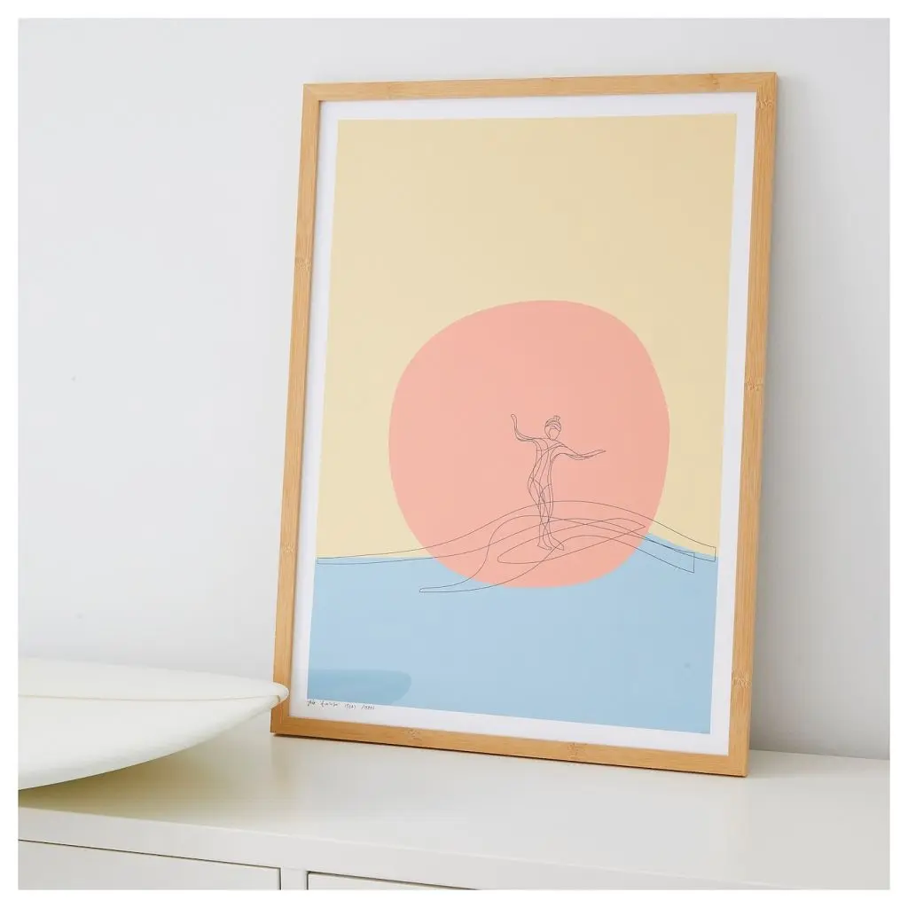 Бамбуковая рама подчеркивает теплую цветовую гамму постера.