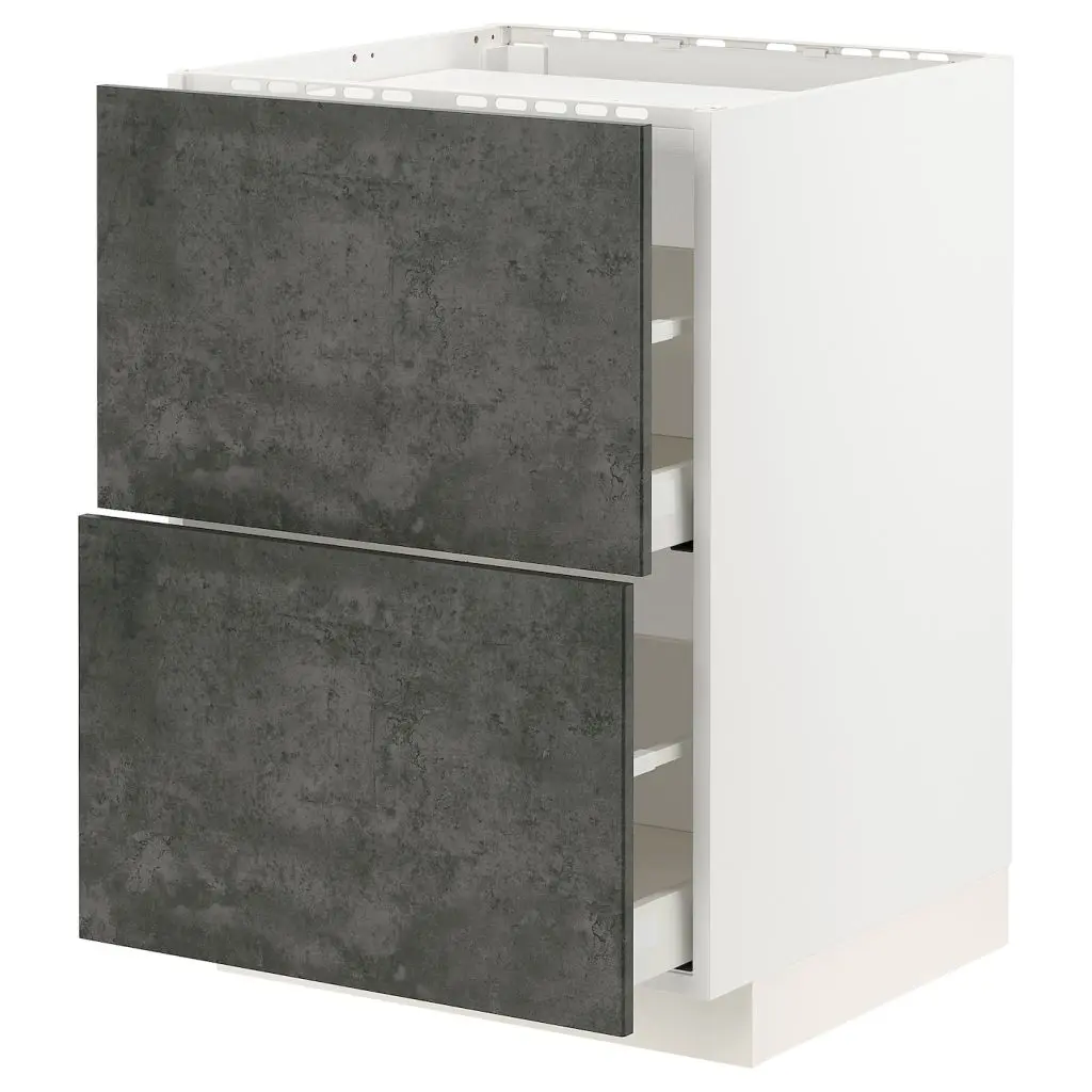 Шкаф д/варочной панели/2фасада/2ящ, белый/кальхюттан под темно-серый бетон, 60x60 см