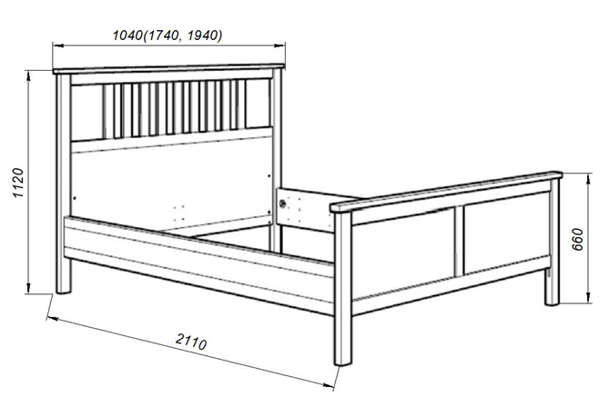Кровать Кантри двухместная, 2110х1740х1120, цвет Белый. Изготовлена из массива хвойных пород. Спальное место 1600х2000. Основание не в комплекте. Приобретается отдельно. Мебель для жилых помещений. Гарантийный срок 18 месяцев.