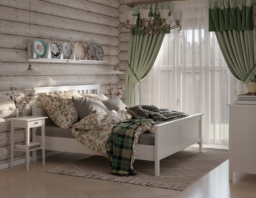 Кровать Кантри двухспальная 160х200, массив сосны, цвет белый