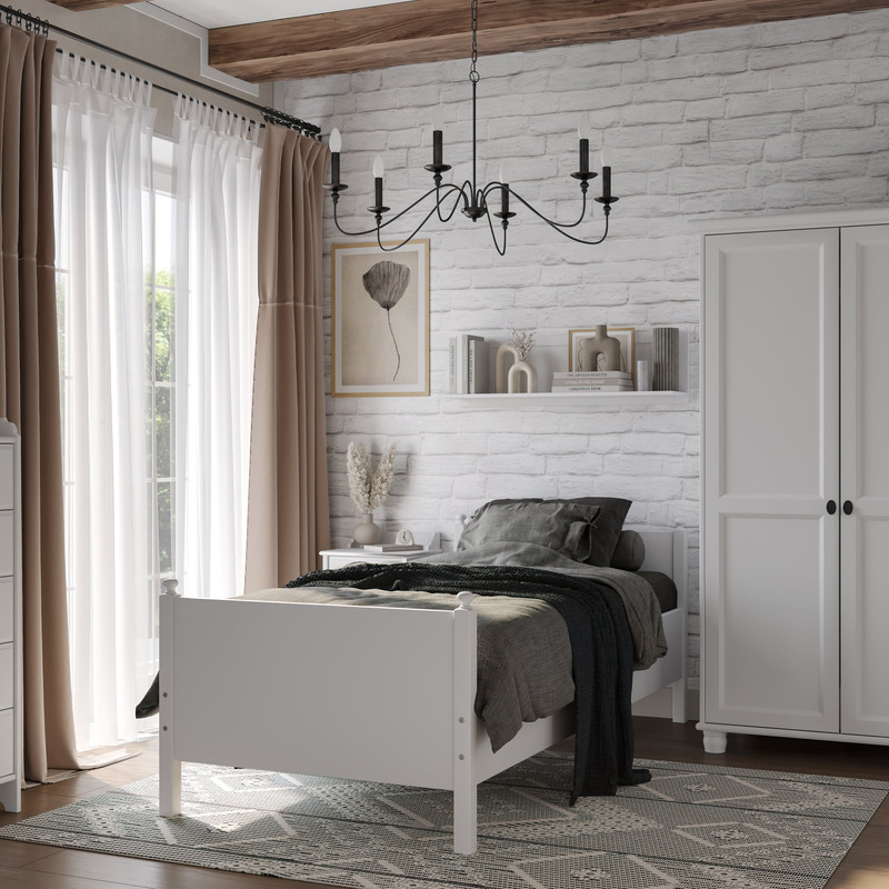 Кровать Вествик односпальная 90х200, массив сосны, цвет белый