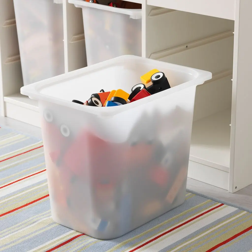 Детям нужно пространство для игр и место для хранения игрушек. Серия деревянной мебели для хранения ТРУФАСТ с легкими пластиковыми контейнерами, которые ребенок сможет легко выдвигать, переносить и убирать обратно.