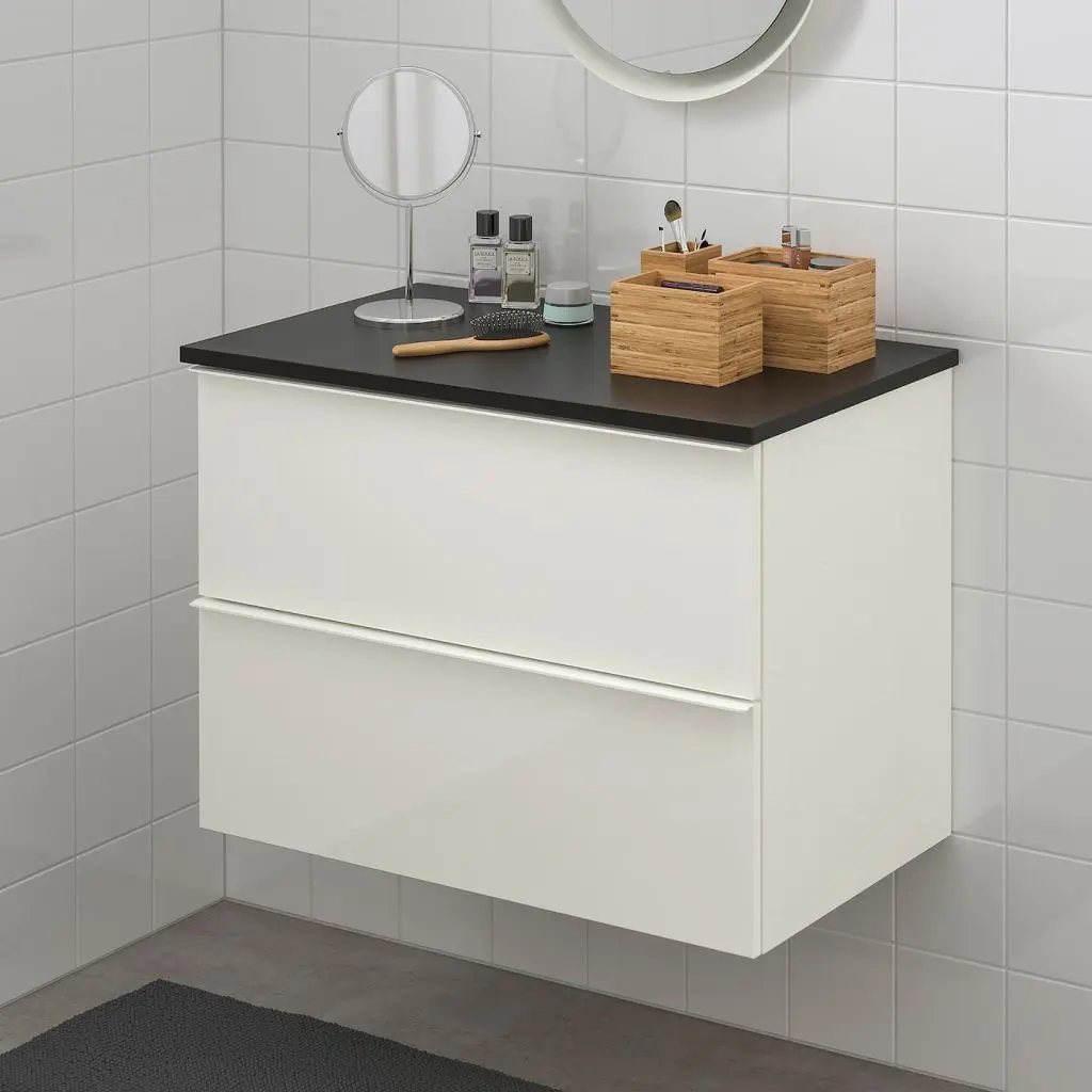 Отличное соотношение цены и качества и гарантия на срок не менее 10 лет ежедневного использования. Ознакомьтесь с условиями в гарантийной брошюре.Матовая поверхность шкафа под раковину создает располагающую атмосферу.Ножки ГОДМОРГОН продаются отдельно.Ручки прилагаются.Ламинат чувствителен к воздействию едких химикатов, например средств для удаления накипи, хлора и ацетона. При попадании таких средств на ламинат их необходимо сразу удалить. Для ухода можно использовать обычные моющие средства.Убедитесь, что материалы, из которых сделаны стены ванной комнаты, выдержат вес мебели. Если у вас возникли сомнения по поводу установки, обратитесь к специалисту. Для разных стен требуются различные шурупы, дюбели, саморезы и т. п. (не прилагаются).Эту мебель необходимо крепить к стене с помощью прилагаемого стенного крепежа.Если вы сомневаетесь в прочности стен в ванной, мы рекомендуем использовать ножки.Если вы сомневаетесь в прочности стен в ванной, мы рекомендуем использовать ножки.Дизайнер