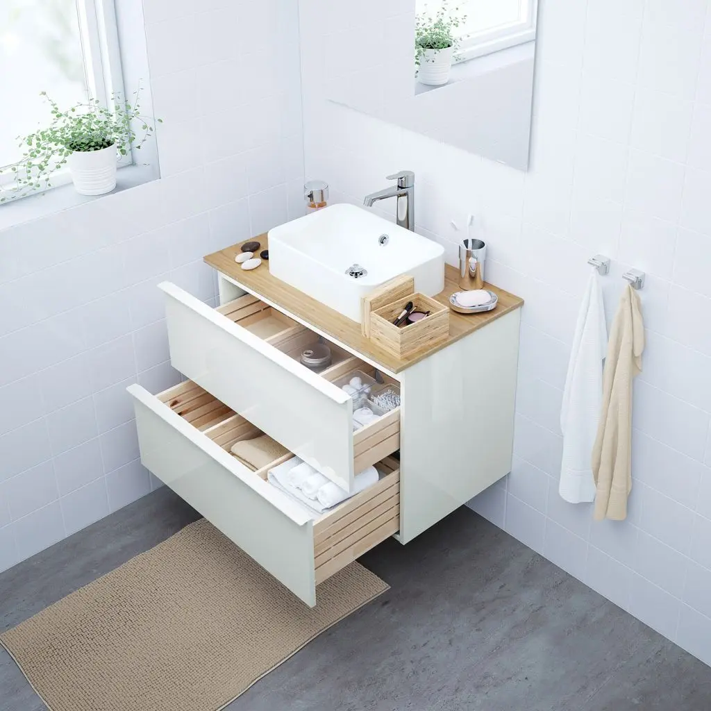 Отличное соотношение цены и качества и гарантия на срок не менее 10 лет ежедневного использования. Ознакомьтесь с условиями в гарантийной брошюре.Каждый раз открывая кран, вы экономите воду и энергию, так как аэратор предотвращает излишний расход воды.Ножки ГОДМОРГОН продаются отдельно.Обратите, пожалуйста, внимание, что для установки раковины в столешницу вам потребуются силиконовый уплотнитель и лобзик (продаются отдельно).Ручки прилагаются.Выпуск и сифон прилагаются.Смеситель и выпуск прилагаются.Раковина устойчива к воздействию большинства химикатов, за исключением сильных кислот и сильных щелочей.Эту мебель необходимо крепить к стене с помощью прилагаемого стенного крепежа.Если вы сомневаетесь в прочности стен в ванной, мы рекомендуем использовать ножки.Используйте прилагающийся шаблон для установки раковины на столешницу.Мойку в столешницу следует устанавливать через 2 часа после нанесения силиконового уплотнителя на столешницу, чтобы он успел затвердеть.Для сборки этой мебели требуются два человека.Убедитесь, что материалы, из которых сделаны стены ванной комнаты, выдержат вес мебели. Если у вас возникли сомнения по поводу установки, обратитесь к специалисту. Для разных стен требуются различные шурупы, дюбели, саморезы и т. п. (не прилагаются).Дизайнер