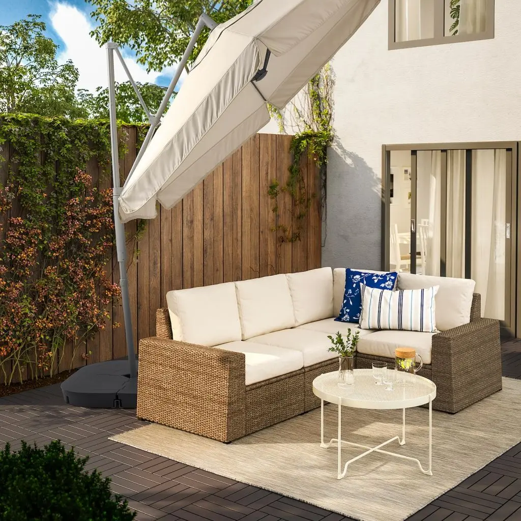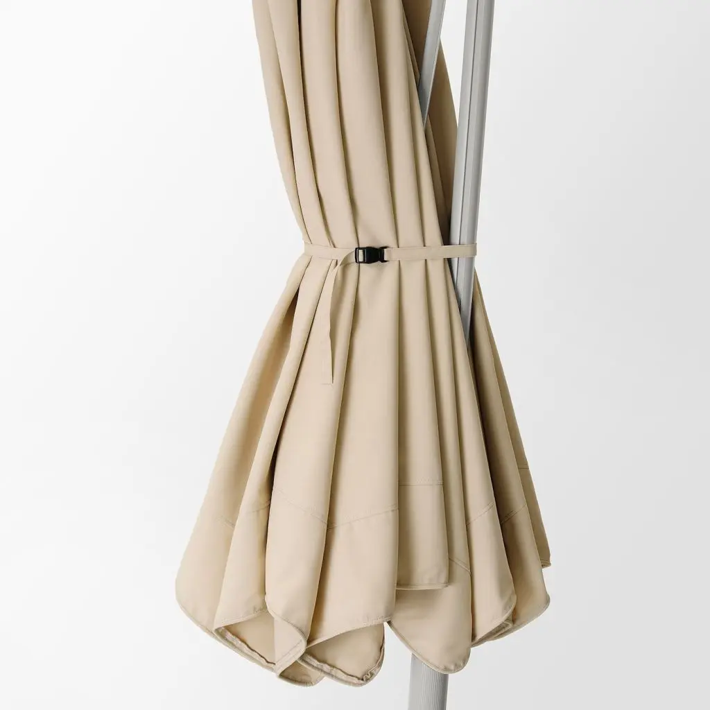 Ткань обеспечивает отличную защиту от УФ-лучей. Коэффициент защиты (UPF): 50+. Ткань с таким коэффициентом защиты блокирует 98 % ультрафиолетового излучения.Регулируемый угол наклона зонта обеспечивает защиту от солнца в течение всего дня.Открывать и закрывать зонт, а также регулировать уровень его наклона можно с помощью компактной удобной ручки.Цвет долго сохраняет яркость, так как ткань устойчива к выцветанию.Благодаря влагоотталкивающей ткани купола зонт защитит вас от легкого дождя.Купол зонта легко снять, чтобы постирать в машине.Опора зонта от солнца изготовлена из алюминия, а значит, можно не беспокоиться о появлении ржавчины.Вентиляционное отверстие снижает напор ветра и обеспечивает циркуляцию теплого воздуха.Ремешок с пряжкой фиксирует купол зонта в сложенном виде.Каждую часть опоры зонта от солнца необходимо полностью заполнить песком. Для этого нужно примерно 64 литра песка, что обеспечит общий вес около 90 кг.Всегда убирайте зонт, когда не используете его и в ветреную погоду.Зонт не обеспечивает защиту от отраженного и рассеянного ультрафиолетового излучения.Можно дополнить чехлом для зонта от солнца ТОСТЕРО (220 см).Дизайнер