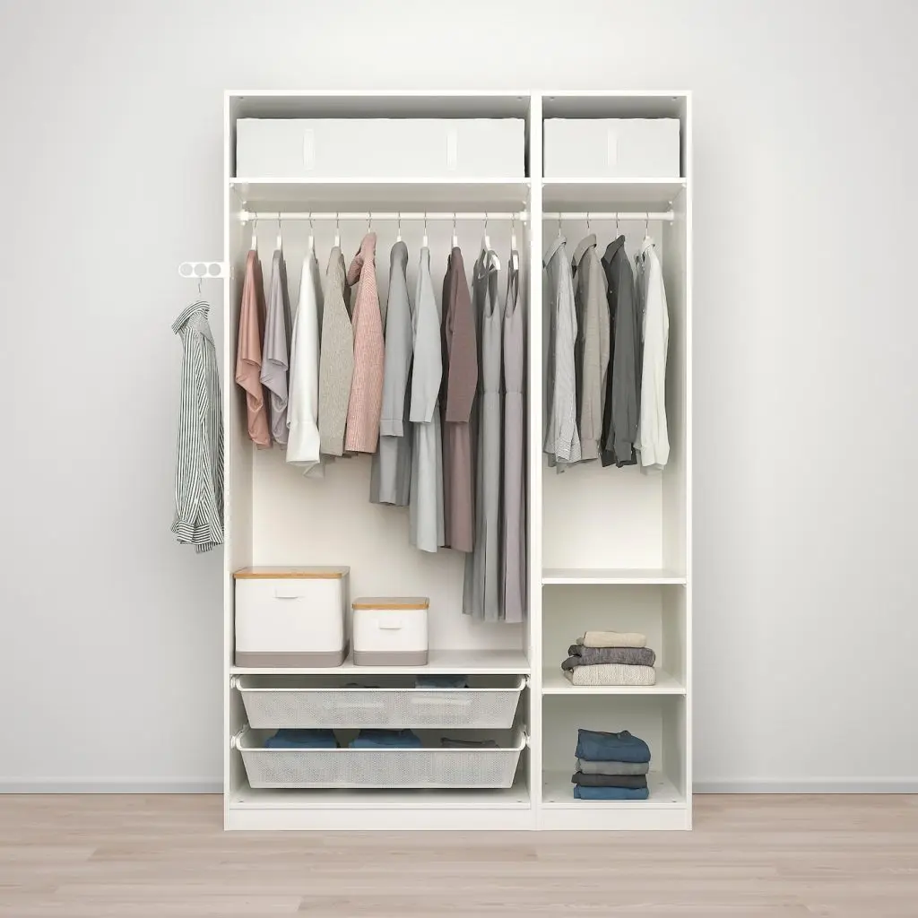Бесплатно 10 лет гарантии. Подробнее об условиях гарантии – в гарантийной брошюре.Эту комбинацию ПАКС/КОМПЛИМЕНТ можно адаптировать в соответствии с вашими потребностями, воспользовавшись программой для проектирования гардеробов ПАКС.Регулируемые ножки позволяют скорректировать неровности пола.Благодаря петлям с интегрированным доводчиком дверцы закрываются плавно и бесшумно.С помощью программы планирования гардероба ПАКС вы можете легко дополнить свою комбинацию интегрированной подсветкой. После выбора источника освещения программа предложит необходимые аксессуары.Сетчатый материал обеспечивает циркуляцию воздуха. Корзина подходит для хранения сложенной одежды и различных аксессуаров.Эту мебель необходимо крепить к стене с помощью прилагаемого стенного крепежа.Для разных стен требуются различные крепежные приспособления. Подберите подходящие для ваших стен шурупы, дюбели, саморезы и т. п. (не прилагаются).Для сборки этой мебели требуются два человека.Требуемая мин. высота потолка: 245 см. Следуйте инструкциям по сборке в упаковке.Для этого товара необходимы петли. Петли включены в стоимость, но продаются в отдельной упаковке.Аксессуары для организации хранения в гардеробе продаются отдельно.Ручки прилагаются.Дизайнер