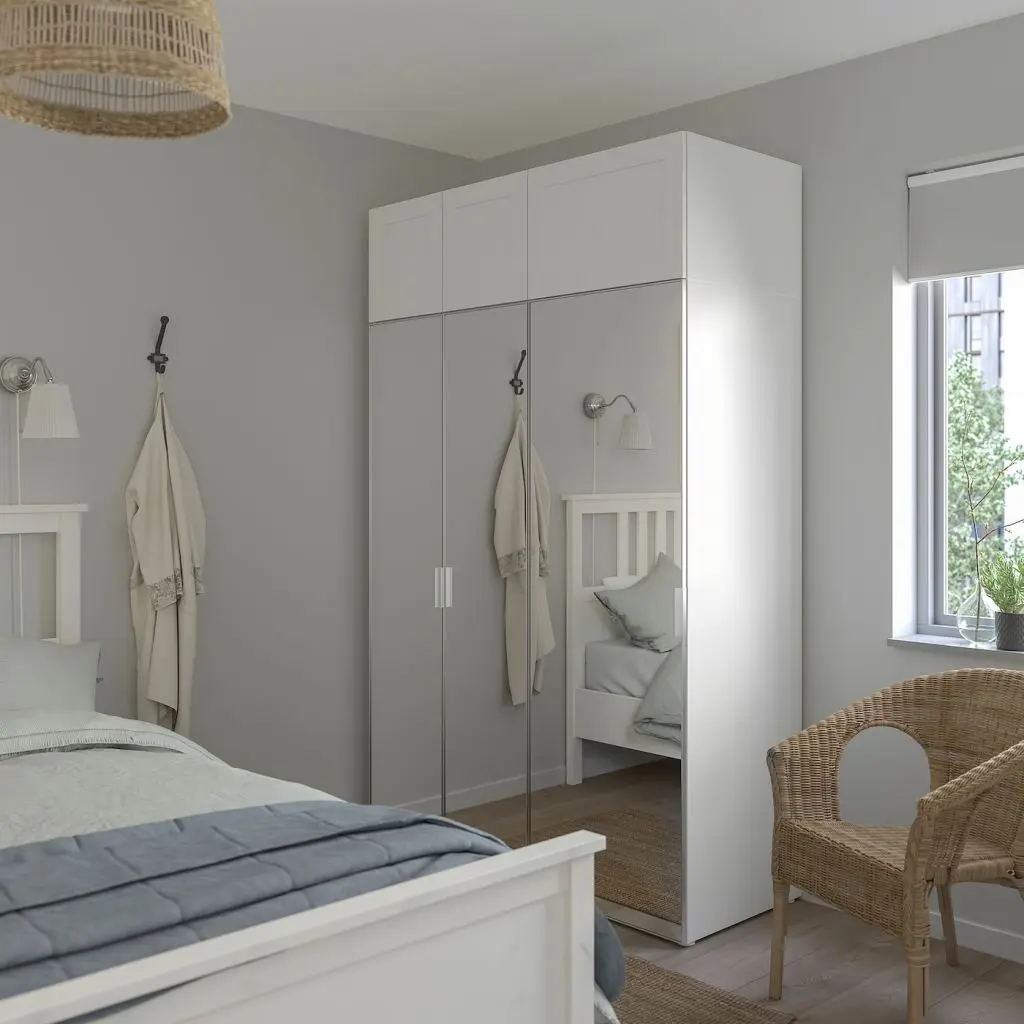 Зеркальные двери визуально расширяют пространство и делают его легче и светлее. Отличный способ преображения узкого коридора или маленькой спальни.Зеркальная дверца — нет необходимости в отдельном напольном или настенном зеркале.Не нужно сверлить отверстия, ручка легко и надежно устанавливается в нужном месте благодаря защелкивающемуся креплению.Двери можно повесить так, как вам удобно — с открыванием вправо или влево.Ручки продаются отдельно.Подходит для гардеробов ОПХУС.Для этого товара необходимы петли. Петли включены в стоимость, но продаются в отдельной упаковке.