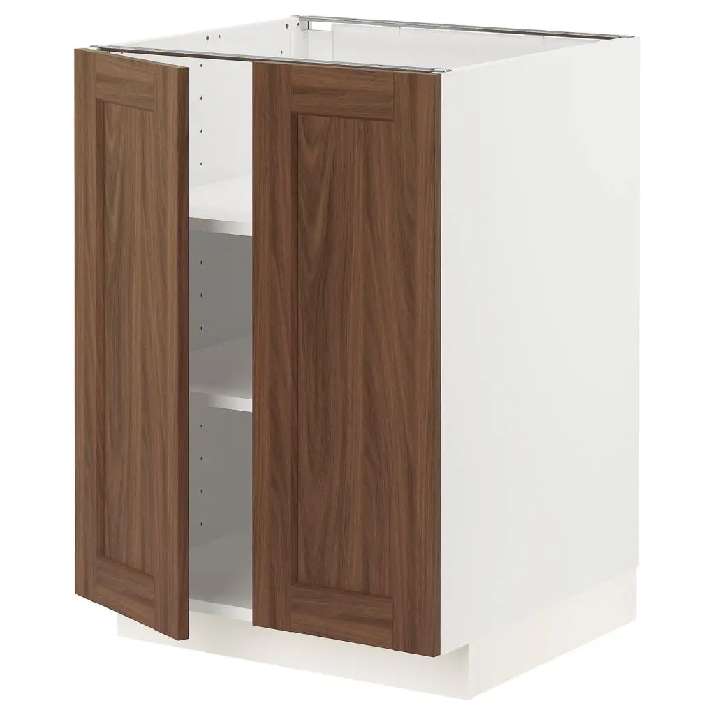 Напольный шкаф с полками/2дверцами, белый Энчёпинг/коричневый под грецкий орех, 60x60 см