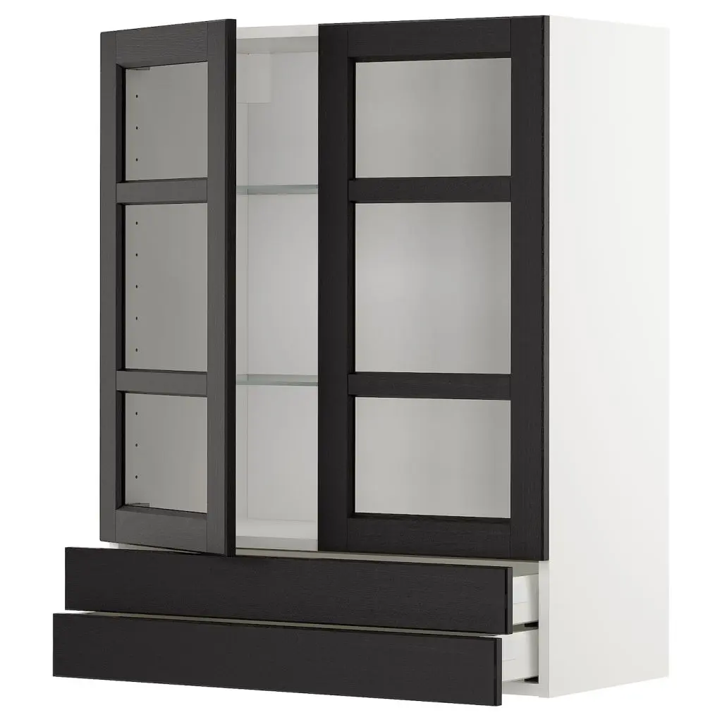 Навесной шкаф/2 стекл двери/2 ящика, белый Энчёпинг/белый под дерево, 80x100 см