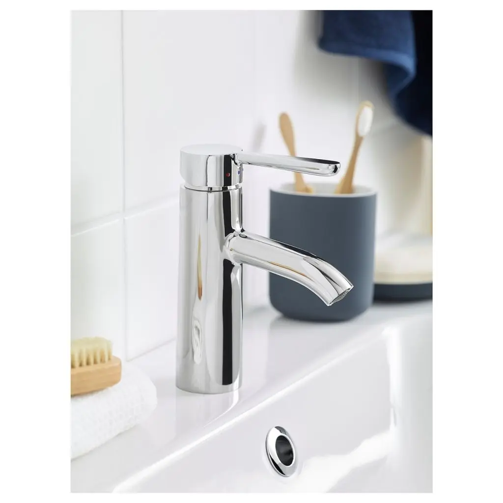 Бесплатно 10 лет гарантии. Подробнее об условиях гарантии – в гарантийной брошюре.Чтобы пустить горячую воду, поверните рычаг влево. Горячая вода расходуется только после этого.Этот смеситель прослужит долгие годы благодаря прочным керамическим дискам, которые выдерживают сильное трение, возникающее в процессе изменения температуры воды.Хромированная латунь – прочный и простой в уходе материал.Интегрированный в смеситель аэратор поддерживает оптимальный напор, при этом используется меньше воды и энергии.Выпуск прилагается.Экономящий воду и энергию (5,7 л/мин.) аэратор для систем с высоким давлением прилагается.Соединительные шланги на 1/2″ прилагаются. Длина: 50 см. Инструмент для установки смесителя прилагаются.Протестировано и сертифицировано в соответствии с государственными и международными стандартами качества, безопасности и гигиеничности.Смеситель может быть использован в системах высокого давления. Выдерживает давление макс. 10 бар (1000 кПа). Рекомендуемое рабочее давление: 1,0–5,0 бар (100 кПа–500 кПа).Макс. температура горячей воды 80°C/176°F.Если у вас возникли сомнения по поводу установки, обратитесь к специалисту.Если у Вас возникли сомнения по поводу установки, обратитесь к специалисту.Подходит для всех раковин из ассортимента ИКЕА, а также для стандартных раковин других производителей.Дизайнер