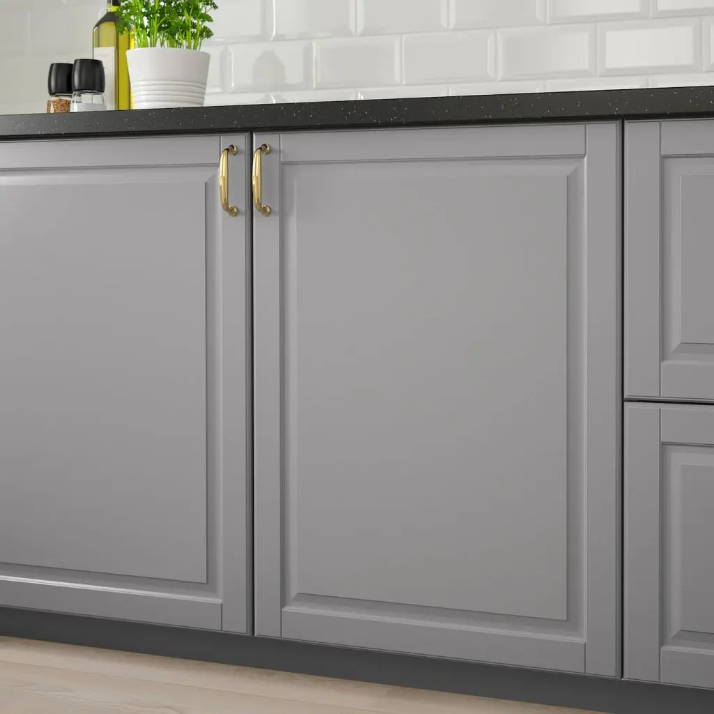 Серая дверца БУДБИН с широкой рамой подчеркнет традиционный стиль вашей кухни, добавив в интерьер сдержанный изящный колорит.Гладкие лакированные дверцы устойчивы к воздействию влаги и загрязнениям и просты в уходе.Бесплатно 25 лет гарантии. Подробнее об условиях гарантии – в гарантийной брошюре.Дверцу можно установить справа или слева.Дополните петлями со встроенным стопором УТРУСТА 110°, продаются отдельно.Необходимо дополнить 2 петлями.Можно дополнить ручкой.Можно дополнить серыми накладными панелями, цоколями и декоративными карнизами БУДБИН.Дизайнер